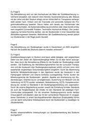 Zu Frage 5: Die Akkreditierung wird von den Hochschulen als Mittel der Qualitätssicherung zu- nehmend akzeptiert, weil dadurch eine intensive Auseinandersetzung aller Akteure mit der Lehre und dem Studium erfolgt und ein hohes Maß an Transparenz sicherge- stellt werden kann. Kritisch wird der finanzielle und personelle Aufwand der Pro- grammakkreditierung bewertet. Darum haben sich bereits vier Hochschulen des Landes entschieden, die Systemakkreditierung einzuführen oder diese bereits erfolg- reich eingeführt (Universität Potsdam, Technische Hochschule Wildau). Die Landes- regierung hat keine Kenntnis darüber, wie die Studierenden in ihrer Gesamtheit das Akkreditierungswesen bewerten. Maßnahmen der Qualitätssicherung werden jedoch von Studierenden in der Regel positiv beurteilt. Frage 6 Die Akkreditierung von Studiengängen wurde in Deutschland um 2003 eingeführt. Hat sich die Qualität des Studiums dadurch messbar verbessert? Zu Frage 6: Qualitätsverbesserungen im Studium sind kaum valide belegbar, weil vergleichbare Daten aus den Zeiten der Diplomstudiengänge fehlen. Es ist aber davon auszuge- hen, dass durch die Akkreditierung Effekte für die Qualität der Studiengänge erzielt werden: Die Etablierung der Akkreditierungsverfahren hat die curriculare Transpa- renz und den Austausch über Studiengangkonzeptionen erhöht und eine zuvor nicht bestehende vergleichbare Dokumentationspflicht eingeführt. Durch die Abstimmung fachlicher Mindestanforderungen in den Agenturen wurde der Austausch in den Fachgruppen befördert und externe Einflüsse zurückgedrängt. Ferner wurden die Mitwirkungsrechte der Studierenden gestärkt. Aspekte wie Anerkennung von Stu- dienleistungen, Orientierung an Lernergebnissen, Ausformung von Modulen und die Verbindung mit ECTS wurden verbessert. Modularisierung, ECTS, Kompetenzorien- tierung etc. wurden zu Standards in der Studiengangentwicklung und -organisation. Durch die externe Begutachtung wurden sowohl die Einhaltung formaler Standards als auch die Vergleichbarkeit der Inhalte mit den Standards der jeweiligen Fach- Communities sichergestellt. Für die einzelnen Studienprogramme wurde darüber hinaus geprüft und attestiert, dass sie mit den vorhandenen Ressourcen im vorgege- benen Zeitrahmen zu einem berufsqualifzierenden Abschluss (Employability) führen und der damit verbundene Arbeitsaufwand durch die Studierenden zu bewältigen ist (Studierbarkeit). Frage 7 Wurden wissenschaftliche Untersuchungen zur Qualitätsentwicklung des Studiums durchgeführt?