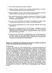 8. Wer hat die Aufstellung der Schilder veranlasst? 9. Welche fachlichen, sachlichen oder rechtlichen Gründe führten zur Bestim- mung der Abstände zwischen den einzelnen Schildern? 10. Welche sachlichen, fachlichen oder rechtlichen Gründe begründen die Aufstel- lung der Schilder in die eine aber nicht in die andere Richtung? 11. Wer traf die Entscheidung zur grafischen Gestaltung der Schilder und welche sachlichen Entscheidungsgrundlagen waren für die umgesetzte grafische Gestaltung ausschlaggebend? 12. Für wen wurden die Schilder im konkreten Fall aufgestellt und welche Hand- lungsanweisung ergibt sich für den Leser durch die Hinweisschilder? 13. Was kostet die Asbestsanierung für einen Kilometer Waldweg? Bitte Kosten aufschlüsseln? 14. Was würde die Asbestsanierung im Fall des Weges im Waldstück zwischen Briesensee und Biebersdorf kosten? Ist ein Rückbau, wie in der Drucksache 5/6565 angegeben, in absehbarer Zeit vorgesehen? Wenn ja, wann und durch wen? Wenn nein, warum nicht? 15. Insofern bei der anstehenden Kreisgebietsreform die Forstverwaltung kom- munalisiert werden soll, wer trägt etwaige Folgekosten für die Unterhaltung bzw. Sanierung der asbestbelasteten Wege und die Wartung, Reparatur bzw. Entfernung und Entsorgung der Hinweisschilder? Namens der Landesregierung beantwortet der Minister für Ländliche Entwicklung, Umwelt und Landwirtschaft die Kleine Anfrage wie folgt: Vorbemerkung: Im Januar 2013 wurde die untere Abfallwirtschafts- und Bodenschutzbehörde des Landkreises Dahme-Spreewald als zuständige Behörde aufgrund von Bürgerhinwei- sen auf den Einbau von Asbestzementbruchstücken in Teilflächen von Zuwegungen und zwei Kranstellflächen im Windpark Biebersdorf aufmerksam. Die betroffenen Wege- und Kranstellflächen wurden im Rahmen der Errichtung des Windparks aus- gebaut bzw. neu hergestellt. Aufgrund weiterer Untersuchungen wurde ermittelt, dass der Aufbau der Wege- und Kranstellflächen zweistufig erfolgt ist und dass das in der Unterschicht verbaute Ziegelrecycling mit Asbest belastet ist. Die Ziegelrecyc- lingschicht wird von einer Betonrecyclingschicht überdeckt, die weitestgehend frei von Asbest ist. Aufgrund dessen wurde per abfallrechtlicher Ordnungsverfügung dem Betreiber des Windparks angeordnet, dass der mit Asbest verunreinigte Bauschutt auf den betroffenen Wege- und Kranstellflächen ausgebaut und entsorgt wird. Im einstweiligen Rechtsschutzverfahren wurde durch das Verwaltungsgericht Cottbus die aufschiebende Wirkung des eingelegten Widerspruchs unter der Maßgabe wie- derhergestellt, dass Schilder mit dem Hinweis „asbestbelasteter Weg“ aufgestellt werden.