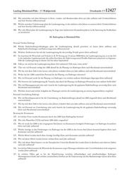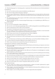 Drucksache 17/ 12427 Landtag Rheinland-Pfalz – 17. Wahlperiode 23. Welche Besoldungsregeln bzw. Einstufungen gelten in vergleichender Weise beim Bund und in den Nachbarbundesländern? Geschäftsführung 24. Seit wann ist die Stelle des stellvertretenden Geschäftsführers des LBM unbesetzt? 25. Wie werden die dadurch fehlenden Kapazitäten aufgefangen? 26. Bereits im August 2018 (Drucksache 17/6965) sprach die Landesregierung davon, die vakante Stelle des stellvertretenden Geschäftsführers „zeitnah“ zu besetzen. Warum konnte die Stelle des stellvertretenden Geschäftsführers bisher nicht besetzt werden? 27. Wie viele Bewerbungen gab es bisher insgesamt auf die Stelle des stellvertretenden Geschäftsführers (bitte in interne und externe Bewerbungen aufteilen)? 28. Plant die Landesregierung weitere Umstrukturierungen/Neubesetzungen in der Geschäftsführung des LBM? Wenn ja, in welchem Zeitraum? Weitere Personalstellen 29. Über wie viele Verwaltungsstellen verfügt der LBM derzeit? 30. Wie weit ist der von der Landesregierung angekündigte Abbau von 180 Verwaltungsstellen bis zum Jahr 2020 fortgeschritten? 31. Hält die Landesregierung an diesem Abbau fest (bitte begründen)? 32. Wie gedenkt die Landesregierung den Kapazitätsverlust zu kompensieren? 33. Wie viele Techniker und Meister im Rahmen der Bauüberwachung sind in den letzten zehn Jahren zu einem kommunalen Arbeitgeber (VG/Städte und auch Eigenbetriebe) gewechselt (bitte pro Jahr angeben)? 34. Welche Gründe sind nach Ansicht der Landesregierung für diesen Wechsel maßgeblich? 35. Welche Rolle spielt die unterschiedliche Bezahlung (TV-L zu TVöD)? 36. Wie viele Absolventinnen und Absolventen welcher Fachrichtungen absolvieren die überbetriebliche Ausbildung in Mayen pro Jahr? 37. Wie viele Absolventinnen und Absolventen würde der LBM benötigen, um seinen Personalbedarf vollständig zu decken? 38. In welchem Fachbereich innerhalb des LBM liegt der höchste Mangel an Personal vor? 39. Welche weiteren Statistiken über das aktuelle Personal liegen der Landesregierung vor? Auswirkungen der Gründung der Autobahn GmbH des Bundes: 40. Welche Auswirkungen hatte die Gründung Autobahn GmbH des Bundes auf die Einstellung neuer Ingenieure und weiteren Personals beim LBM? 41. Wie hoch sind die Vergütungsunterschiede zwischen dem LBM und der Autobahn GmbH des Bundes für angestellte und verbeamtete Ingenieure und für weiteres Personal? 42. Wie hoch wird der Bedarf an eigenen Ingenieuren beim LBM nach der Übernahme der Geschäftstätigkeit der Autobahn GmbH des Bundes am 1. Januar 2021 sein? 43. Welche Veränderungen hat die Landesregierung bei der Personalrekrutierung und der Personalbindung durch die Gründung der Autobahn GmbH des Bundes wahrgenommen? 44. Wie wird sich die Struktur des LBM nach der Übernahme der Geschäftstätigkeit der Autobahn GmbH des Bundes verändern? 45. Wurden in den letzten fünf Jahren Leistungen der Autobahn GmbH des Bundes in Anspruch genommen? 46. Falls ja, für welche Projekte und in welchem Umfang (bitte auflisten), falls nein, wieso nicht? 47. Ist in Zukunft geplant, Leistungen der Autobahn GmbH des Bundes in Anspruch zu nehmen? 48. Falls ja, für welche Projekte und in welchem Umfang (bitte auflisten), falls nein, wieso nicht? Externe Ingenieurleistungen 49. Wie viele Aufträge sind im Rahmen externer Ingenieurleistungen seit Beginn der aktuellen Legislaturperiode vergeben worden (bitte nach Art der Leistung differenzieren und pro Jahr angeben)? 50. Welche Aufgaben wurden dabei hauptsächlichen von externen Ingenieuren übernommen (bitte aufschlüsseln nach reinen Straßenbauplanungen und sonstigen Leistungen)? 51. Welche Aufgaben verteilt der LBM grundsätzlich nicht an externe Ingenieurbüros (bitte begründen)? 2