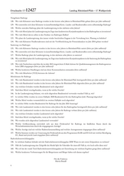 Drucksache 17/ 12427 Landtag Rheinland-Pfalz – 17. Wahlperiode Neugebaute Radwege 128. Wie viele Kilometer neue Radwege wurden in den letzten zehn Jahren in Rheinland-Pfalz gebaut (bitte pro Jahr auflisten)? 129. Wie unterteilen sich diese Kilometer in (unselbstständige) Kreis-, Landes- und Bundesstraßen sowie selbstständige Radwege? 130. Welche zentralen Radwege plant die Landesregierung in den nächsten zehn Jahren? 131. Wie viele Mittel plant die Landesregierung im Zuge eines landesweiten Konjunkturpaketes in den Radwegebau zu investieren? 132. Wie viele Mittel davon sollen in den Neubau von Radwegen fließen? 133. Wie plant die Landesregierung, den immer wieder beschrieben Engpass in der Verwaltung bzw. Planung zu beheben? 134. Wie viele Kilometer Pendlerradrouten sind seit der Veröffentlichung der Potenzialanalyse im Jahr 2014 gebaut worden? Sanierung von Radwegen 135. Wie viele Kilometer Radwege wurden in den letzten zehn Jahren in Rheinland-Pfalz saniert (bitte pro Jahr auflisten)? 136. Wie unterteilen sich diese Kilometer in (unselbstständige) Kreis-, Landes- und Bundesstraßen sowie selbstständige Radwege? 137. Welche Radwege plant die Landesregierung, in den nächsten zehn Jahren zu sanieren? 138. Wie viele Mittel plant die Landesregierung, im Zuge eines landesweiten Konjunkturpaketes in die Sanierung des Radwegebaus zu investieren? 139. Wie viele Nachrichten sind über die im Jahr 2013 eingerichtete E-Mail-Adresse für Qualitätsmanagement des Radwegenetzes beim LBM eingegangen (bitte pro Jahr auflisten)? 140. Welche konkreten Handlungen sind aus dieser Kommunikation entstanden (bitte auflisten)? 141. Wie viele Mitarbeiter (VZÄ) betreuen die Adresse? Mitteleinsatz für Radwege 142. Wie viele Bundesmittel wurden in den letzten zehn Jahren für Rheinland-Pfalz bereitgestellt (bitte pro Jahr auflisten)? 143. Wie viele Bundesmittel wurden in den letzten zehn Jahren für Rheinland-Pfalz abgerufen (bitte pro Jahr auflisten)? 144. Aus welchen Gründen wurden Bundesmittel nicht abgerufen? 145. Sind diese Mittel zweckgebunden, wenn ja für welche Zwecke? 146. Ist der Landesregierung bekannt, wie nicht abgerufene Bundesmittel verwendet wurden? Falls ja, wie? 147. In welcher Höhe wurden im ersten Halbjahr 2020 Bundesmittel für den Radwegebau (inkl. Planung) abgerufen? 148. Welche Mittel werden voraussichtlich im zweiten Halbjahr noch abgerufen? 149. In welcher Höhe werden Bundesmittel für Radwege für das Jahr 2021 beantragt? 150. Wie viele Landesmittel wurden in den letzten zehn Jahren für den Radwegebau bereitgestellt (bitte pro Jahr auflisten)? 151. Wie viele Landesmittel wurden in den letzten zehn Jahren für Radwege verbaut (bitte pro Jahr auflisten) 152. Aus welchen Gründen wurden Landesmittel nicht abgerufen? 153. Sind diese Mittel zweckgebunden, wenn ja für welche Zwecke? 154. Wie wurden nicht abgerufene Landesmittel verwendet? 155. Welche Größenordnung entwickelt sich aus dem Förderaufruf für Radwege im ländli chen Raum durch das Wirtschaftsministerium durch die eingegangenen Anträge? 156. Welche Anträge sind mit welcher Radstreckenanmeldung und welcher Antragssumme eingegangen (bitte auflisten)? 157. Welche Summen werden zur Umsetzung des Förderaufrufs aus den Programmen ELER und EULLE mit welcher Beteiligung EU, Bund und jeweils Land eingeplant (bitte auflisten)? Radverkehrsentwicklungsplan 158. In welchem Stadium befindet sich der Radverkehrsentwicklungsplan 2030? Wann ist mit ersten Eckpunkten zu rechnen? 159. Hält die Landesregierung eine Zielgröße des Modal Split für Fahrräder für sinnvoll? Falls ja, wie hoch sollte diese sein? 160. Wie oft hat der runde Tisch Radverkehrsentwicklungsplan seit Einrichtung mit welchem Ergebnis getagt (bitte auflisten)? 161. Welche konkreten Verbesserungen für die Bürgerinnen und Bürger haben sich daraus ergeben? Für die Fraktion: Martin Brandl 6
