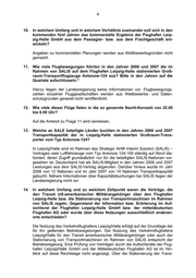 4 10. In welchem Umfang und in welchem Verhältnis zueinander soll sich in den kommenden fünf Jahren das kommerzielle Ergebnis der Flughafen Leip- zig-Halle GmbH aus dem Passagier- bzw. aus dem Frachtgeschäft ent- wickeln? Angaben zu kommerziellen Planungen werden aus Wettbewerbsgründen nicht gemacht. 11. Wie viele Flugbewegungen führten in den Jahren 2006 und 2007 die im Rahmen von SALlS auf dem Flughafen Leipzig-Halle stationierten Groß- raum-Transportflugzeuge Antonow-124 aus? Bitte in den Jahren auf die Quartale aufschlüsseln.“ Hierzu liegen der Landesregierung keine Informationen vor. Flugbewegungs- zahlen einzelner Fluggesellschaften werden aus Wettbewerbs- und Daten- schutzgründen generell nicht veröffentlicht. 12. Wie viele dieser Flüge fielen in die so genannte Nacht-Kernzeit von 22.00 bis 6.00 Uhr? Auf die Antwort zu Frage 11 wird verwiesen. 13. Welche an SALE beteiligte Länder buchten in den Jahren 2006 und 2007 Transportkapazität der in Leipzig-Halle stationierten Großraum-Trans- porter vom Typ Antonow-124? In Leipzig/Halle sind im Rahmen des Strategic Airlift Interim Solution (SALIS) – Vertrages zwei Luftfahrzeuge vom Typ Antonow 124-100 ständig auf Abruf sta- tioniert, deren Zugriff grundsätzlich nur für die beteiligten SALIS-Nationen vor- gesehen ist. Deutschland hat als SALIS-Mitglied in den Jahren 2006 und 2007 Leistungen aus dem SALIS-Vertrag abgerufen. Darüber hinaus wurde im Jahr 2006 von 12 Nationen und im Jahr 2007 von 14 Nationen Transportkapazität gebucht. Nähere Informationen über Kapazitätsbuchungen bei SALIS liegen der Landesregierung nicht vor. 14. In welchem Umfang und zu welchem Zeitpunkt waren die Verträge, die den Transit US-amerikanischer Militärangehöriger über den Flughafen Leipzig-Halle bzw. die Stationierung von Transportmaschinen im Rahmen von SALIS regeln, Gegenstand der Information bzw. Erörterung im Auf- sichtsrat der Flughafen Leipzig-Halle GmbH bzw. der mitteldeutschen Flughafen AG oder wurde über diese Nutzungen ausschließlich anderen- orts entschieden? Die Nutzung des Verkehrsflughafens Leipzig/Halle erfolgt auf der Grundlage der für ihn geltenden Betriebsregelungen. Die Nutzung des Verkehrsflughafens Leipzig/Halle für den Transit amerikanischer Militärangehöriger oder auch der Stationierung von Transportmaschinen im Rahmen von SALIS entspricht der Betriebsregelung. Eine Prüfung von Verträgen durch die Aufsichtsräte der Flug- hafen Leipzig/Halle GmbH und der Mitteldeutschen Flughafen AG ist im Hin- blick auf diese Rechtslage nicht angezeigt. Über die Stationierung der Trans-