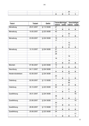 343 - - 25 - 0 0 3 1 Merseburg 25.01.2007 § 113 StGB 27 - - - 1 0 0 0 Merseburg 10.05.2007 § 223 StGB 42 - - - - - 32 - 1 0 1 0 Merseburg 23.09.2007 § 224 StGB 19 - - - 17 - - - - - 13 - - - 13 - 2 0 2 0 Merseburg 12.10.2007 § 224 StGB 27 - - - 23 - - - 28 - - - - - 19 - 18 - - - - - 16 - 4 0 2 0 Mücheln 07.06.2007 § 223 StGB 14 - - - 1 0 0 0 Naumburg 04.11.2007 § 224 StGB - - - - 0 0 0 0 Niederndodeleben 02.08.2007 § 224 StGB - - 17 - 22 - - - 1 0 1 0 Osterburg 02.06.2007 § 113 StGB - - 38 - - - 56 - 0 0 2 0 Osterburg 30.10.2007 § 223 StGB 22 - - - - - 31 - 1 0 1 0 Quedlinburg 30.01.2007 § 224 StGB - - - 18 36 - - - 1 0 0 1 Quedlinburg 23.06.2007 § 224 StGB - - - 19 30 - - - 1 0 0 1 Quedlinburg 28.06.2007 § 113 StGB 17 - - - 1 0 0 0 Quedlinburg 25.08.2007 § 223 StGB 24 - - - - - - 17 1 0 0 1 8
