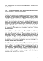 neten Möglichkeiten hat der Landesgesetzgeber in Brandenburg vollumfänglich Ge- brauch gemacht. Frage 4: Welcher Instrumente bedarf es, um die Sicherstellung der ambulanten Ver- sorgung in Brandenburg vollständig zu gewährleisten? zu Frage 4: Hinsichtlich der medizinischen Versorgung werden in Deutschland die entscheiden- den Weichen im selbstverwalteten Gesundheitswesen durch Bundesrecht gestellt. Gemäß § 75 Abs. 1 Satz 1 SGB V haben die Kassenärztlichen Vereinigungen (KV) und die Kassenärztliche Bundesvereinigung (KBV) die vertragsärztliche Versorgung sicherzustellen und den Krankenkassen und ihren Verbänden gegenüber die Gewähr dafür zu übernehmen, dass die vertragsärztliche Versorgung den gesetzlichen und vertraglichen Erfordernissen entspricht. Auch die Sicherstellung der vertragsärztli- chen Versorgung zu den sprechstundenfreien Zeiten (Notdienst) gehört dazu. Nach § 105 Abs. 1 SGB V haben die Kassenärztlichen Vereinigungen entsprechend den Be- darfsplänen alle geeigneten finanziellen und sonstigen Maßnahmen zu ergreifen, um die Sicherstellung der vertragsärztlichen Versorgung zu gewährleisten, zu verbes- sern oder zu fördern. Lassen sich Versorgungslücken nicht beheben, können die KVen bzw. die Kranken- kassen durch Eigeneinrichtungen die Versorgung der Versicherten sicherstellen. Auf dieser rechtlichen Grundlage können z.B. Sicherstellungspraxen und dezentrale, in- terdisziplinäre Praxen mit verschiedenen Fachrichtungen vorgehalten werden. Die Kassenärztliche Vereinigung Brandenburg ergreift sämtliche gesetzlich vorgesehe- nen Möglichkeiten zur Sicherstellung der Versorgung. Ein wichtiges Instrument ist der sogenannte Sicherstellungsfonds. Anders als in manchen anderen Bundeslän- dern wird das Instrument des Sicherstellungsfonds hier von den zuständigen Part- nern schon seit vielen Jahren offensiv genutzt. Um die Ansiedlung von Ärztinnen und Ärzten in Regionen mit bereits bestehenden bzw. zukünftig drohenden Versorgungsengpässen zu unterstützen, hat die Kassen- ärztliche Vereinigung Brandenburg drei Förderprogramme aufgelegt, mit denen sie Umsatzgarantien, Sicherstellungszuschläge und Investitionskostenzuschüsse ge- währt. Grundlage für die Programme ist die Feststellung unterversorgter Regionen durch den Landesausschuss, in dem die Kassenärztliche Vereinigung und die Kran- kenkassen die Sicherstellung der ambulanten Versorgung auf der Grundlage des SGB V gemeinsam verantworten und vollziehen.