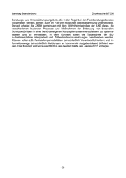 Landtag Brandenburg Drucksache 6/7356 Beratungs- und Unterstützungsangebote, die in der Regel bei den Fachberatungsdiensten vorgehalten werden, wirken auch im Fall von möglicher Selbstgefährdung unterstützend. Derzeit arbeitet die ZABH gemeinsam mit dem Wohnheimbetreiber der EAE daran, die verschiedenen laufenden Prozesse und Maßnahmen der Betreuung von besonders Schutzbedürftigen in einer behördeneigenen Konzeption zusammenzufassen, zu systema- tisieren und zu verstetigen. In dem Konzept sollen die Tatbestände der EU- Aufnahmerichtlinie interpretiert und Tatbestandsvoraussetzungen beschrieben werden. Ebenso sollen z.B. Feststellungsmodalitäten (einschließlich Verantwortlichkeiten) und In- formationswege (einschließlich Meldungen an kommunale Aufgabenträger) definiert wer- den. Das Konzept wird voraussichtlich in der zweiten Hälfte des Jahres 2017 vorliegen. -3-