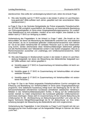 Landtag Brandenburg Drucksache 6/9776 standsnummer. Dies sollte der Landesregierung bekannt sein, daher die erneute Frage: 9. Wie viele Verstöße nach § 17 StVO wurden in den letzten 5 Jahren im Land Branden- burg geahndet? (Bitte auflisten nach Jahren, gesplittet nach den verschiedenen Tatbe- standsnummern.) zu Frage 9: Das in der Zentralen Bußgeldstelle der Polizei eingesetzte Polizeifachverfah- ren SC-OWi/ BB ermöglicht ausschließlich die Erfassung und automatisierte Bearbeitung von Ordnungswidrigkeiten im Sinne eines Vorgangsbearbeitungsprogramms. Ein zusätzli- ches Statistikmodul ist nicht enthalten. Insofern ist es nicht möglich, eine Statistik zu Ver- stößen nach § 17 StVO zur Verfügung zu stellen. Vorbemerkung des Fragestellers: In der Antwort zu Frage 7 steht: „Die Anzahl an Ver- kehrsunfällen, bei denen die Missachtung des Abblendlichts ursächlich war, wird statistisch nicht erhoben, da sie im bundesweit geltenden Unfallursachenverzeichnis nicht definiert ist.“ Da es bei jedem Verkehrsunfall mit verletzten Personen auch zu einer Körperverlet- zung kommt, werden üblicherweise diese Verkehrsunfallanzeigen elektronisch gefertigt und alle Rechtsverstöße nach Tatbeständen sortiert in das System eingegeben. Dies ist zu Recherchezwecken auswertbar und unabhängig vom Unfallursachenverzeichnis. Daher die erneute Frage: 10. Wie viele Ereignisse im Straßenverkehr wurden in den letzten 5 Jahren im Land Bran- denburg festgestellt, bei denen die Missachtung des Abblendlichtes festgestellt wur- de? (Bitte auflisten nach Jahren gesplittet in: a) Verstöße gegen § 17 StVO im Zusammenhang mit Verkehrsunfällen mit leicht ver- letzten Personen b) Verstöße gegen § 17 StVO im Zusammenhang mit Verkehrsunfällen mit schwer verletzten Personen c) Verstöße gegen § 17 StVO im Zusammenhang mit Verkehrsunfällen mit verstor- benen Personen.) zu Frage 10: Das in der Polizei eingesetzte Polizeifachverfahren ComVor ermöglicht die Erfassung und Bearbeitung von Verkehrsunfällen im Sinne eines Vorgangsbearbeitungs- programms. Eine statistische Auswertung erfolgt durch die Übertragung der für die Ver- kehrssicherheitsarbeit erforderlichen bundesweit einheitlichen statistischen Verkehrsun- falldaten in das Verkehrsunfallanalysesystem EUSka. In Bezug auf die Unfallursachen werden deshalb nur Daten entsprechend des bundesweit geltenden Unfallursachenver- zeichnisses übertragen. Dieses sieht im Zusammenhang mit der Ursache Beleuchtung die Unfallursachen Nr. 46 „Nichtbeachtung von Beleuchtungsvorschriften“ und unter der Ka- tegorie Technische Mängel/Wartungsmängel die Nr. 50 „Beleuchtung“ vor. Eine Unter- scheidung bezüglich der Missachtung des Abblendlichts wird nicht vorgenommen. Vorbemerkung des Fragestellers: In den Antworten zu Frage 5 und 6 bezieht sich die Lan- desregierung bei ihren Ausführungen auf die festgestellten Mängel im Rahmen der Aktion „Licht-Test“. -4-