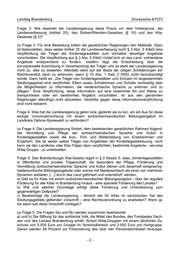Landtag Brandenburg Drucksache 6/7373 Frage 3: Wie bewertet die Landesregierung diese Praxis vor dem Hintergrund, der Landesverfassung (Artikel 25), des Sorben/Wenden-Gesetzes (§ 10) und des Kita- Gesetzes (§ 2)? zu Frage 3: Für eine Bewertung bilden die gesetzlichen Regelungen den Maßstab. Dazu ist festzustellen, dass weder Artikel 25 der Landesverfassung noch § 3 Abs. 5 KitaG eine Verpflichtung der Träger der Kindertagesstätten zum Vorhalten derartiger Angebote vorschreiben. Die Verpflichtung aus § 3 Abs. 5 KitaG richtet sich an das Land, vorhandene Angebote entsprechend zu fördern. Insofern liegt die Entscheidung über die konzeptionelle Ausrichtung in Verantwortung der Träger und es steht der Landesregierung nicht zu, dies zu bewerten. Allenfalls wäre auf der Basis der obigen Schilderungen ein Rechtsverstoß dann zu erkennen, wenn § 10 Abs. 1 Satz 2 SWG nicht berücksichtigt würde. Darin heißt es: „Die Träger von Kindertagesstätten und Schulen im angestammten Siedlungsgebiet sind verpflichtet, Eltern sowie Schülerinnen und Schüler rechtzeitig über die Möglichkeiten zu informieren, die niedersorbische Sprache zu erlernen und zu pflegen.“ Eine Verpflichtung, diese Information auf eine bestimmte Art und Weise zu transportieren oder ein bestimmtes Angebot vorzuhalten, ist aus den genannten Regelungen allerdings nicht abzuleiten. Verstöße gegen diese Informationsverpflichtung sind nicht bekannt. Frage 4: Was hat die Landesregierung getan bzw. gedenkt sie zu tun, um ein Aus für diese einzige Vorschuleinrichtung mit einem sorbischen/wendischen Bildungsangebot im Landkreis Dahme-Spreewald zu verhindern? zu Frage 4: Die Landesregierung fördert, dem bestehenden gesetzlichen Rahmen folgend, die Vermittlung und Pflege der sorbisch/wendischen Sprache und Kultur in Kindertagesstätten sowie die Aus-, Fort- und Weiterbildung von Erzieherinnen und Erziehern. Sie ist weder selbst Träger von Angeboten der Kindertagesbetreuung, noch kann sie den Landkreis oder Kita-Träger dazu verpflichten, bestimmte Angebote - wie eine Witaj-Gruppe - zu unterbreiten. Frage 5: Das Brandenburger Kita-Gesetz regelt in § 2 Absatz 5, dass „Kindertagesstätten in öffentlicher und privater Trägerschaft, die besonders der Pflege, Förderung und Vermittlung sorbischer/wendischer Sprache und Kultur dienen und dauerhaft einsprachig- niedersorbische Bildungsangebote oder solche mit Niedersorbisch als einer von mehreren Sprachen anbieten, […] durch das Land gefördert und unterstützt“ werden. a) Gibt es für Kitas mit einem sorbischen/wendischen Bildungsangebot - über die reguläre Förderung für alle Kitas in Brandenburg hinaus - eine spezielle Förderung des Landes? b) Wie und welcher Grundlage erfolgt diese Förderung und Unterstützung zum gegenwärtigen Zeitpunkt? c) Beabsichtigt die Landesregierung - ähnlich der für Kitas im sächsischen Teil des Siedlungsgebiets geltenden Vorschrift - eine Rechtsverordnung zu erarbeiten? Wenn ja, bis wann soll diese Vorschrift vorliegen? zu Frage 5: Die Fragen 5a) und 5b) werden zusammen beantwortet. a) und b) Die Stiftung für das sorbische Volk, die Mittel des Bundes, des Freistaates Sach- sen und des Landes Brandenburg erhält, fördert Witaj-Gruppen mit einem jährlichen Zu- schuss von 5.000 Euro pro Gruppe im Vorschulbereich und 2.500 Euro pro Hortgruppe. Davon werden 88 Prozent zur Finanzierung des über den Personalschlüssel hinausge- -2-