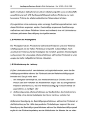 20 Landtag von Sachsen-Anhalt • Dritte Wahlperiode • Drs. 3/1503 • 23.04.1999 _______________________________________________________________________________ (2) lm Anschluß an Maßnahmen der aktiven Arbeitsmarktpolitik sowie eine Beschäfti- gungsförderung nach § 19 Bundessozialhilfegesetz soll eine Förderung nur nach besonderer Prüfung der arbeitsmarktpolitischen Notwendigkeit erfolgen. (3) Jugendlichen ohne Ausbildung sollen vorrangig Qualifizierungsmaßnahmen nach diesen Richtlinien angeboten werden. Zweckmäßige ergänzende Qualifizierungs- maßnahmen nach diesen Richtlinien können auch während einer mit Lohnkostenzu- schüssen geförderten Beschäftigung durchgeführt werden. § 5 Pflichten des Arbeitgebers Der Arbeitgeber hat den Arbeitnehmer während der Förderzeit und einer Weiterbe- schäftigungszeit, die der halben Förderdauer entspricht, zu beschäftigen. Nach Abschluß der Förderung hat der Arbeitgeber die monatlich gezahlten Arbeitsentgelte nachzuweisen. Die Lösung des Arbeitsverhältnisses während der Förderzeit ist unter Angabe der dafür maßgeblichen Gründe mitzuteilen. § 6 Rückforderung der Leistung (1) Der Lohnkostenzuschuß kann teilweise zurückgefordert werden, wenn das Be- schäftigungsverhältnis während der Förderzeit oder der Weiterbeschäftigungszeit beendet wird. Das gilt nicht, wenn 1. der Arbeitgeber berechtigt war, das Arbeitsverhältnis aus Gründen, die in der Person oder dem Verhalten des Arbeitnehmers liegen, oder aus dringenden be- trieblichen Erfordernissen, die einer Weiterbeschäftigung in diesem Betrieb ent- gegenstehen, zu kündigen oder 2. die Beendigung des Arbeitsverhältnisses auf das Bestreben des Arbeitnehmers hin erfolgt, ohne daß der Arbeitgeber den Grund hierfür zu vertreten hat. (2) Bei einer Beendigung des Beschäftigungsverhältnisses während der Förderzeit ist die Rückzahlung auf die Hälfte des gewährten Förderbetrages begrenzt. Bei einer Beendigung des Beschäftigungsverhältnisses während der Weiterbeschäftigungszeit ergibt sich der Rückzahlungsbetrag aus der Multiplikation der Monate, die zur vollen