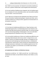 22 Landtag von Sachsen-Anhalt • Dritte Wahlperiode • Drs. 3/1503 • 23.04.1999 _______________________________________________________________________________ Satz 2 SGB lll ist nicht anzuwenden. Der Zeitanteil für die berufliche Qualifizierung kann auch zu größeren Zeitabschnitten zusammengefaßt werden (Blocksystem). (2) Von einer beruflichen Qualifizierung kann abgesehen oder der Qualifizierungsan- teil von mindestens 30 % kann unterschritten werden, wenn die berufliche Qualifizie- rung nach Absatz 1 nicht sinnvoll erscheint. (3) Der Träger kann mit Zustimmung des Arbeitsamtes einen Dritten mit der Durch- führung der beruflichen Qualifizierung beauftragen. Ansprüche des Dritten, der die berufliche Qualifizierung im Auftrag durchführt, gegenüber der Bundesanstalt für Ar- beit bestehen insoweit nicht. § 4 Leistungen (1) Für die Dauer der Qualifizierungs-ABM können an Träger Zuschüsse zu dem Arbeitsentgelt gezahlt werden. Als Arbeitsentgelt gilt das für die Teilnahme an der Qualifizierungs-ABM (Gesamtmaßnahme) gezahlte Entgelt. Die Zuschüsse betragen 100 % des berücksichtigungsfähigen Arbeitsentgeltes im Sinne des § 265 SGB lll. Dies gilt entsprechend für Arbeitnehmer nach § 2 Satz 1 Buchstabe b. (2) Für die berufliche Qualifizierung im Rahmen der Qualifizierungs-ABM können die notwendigen Maßnahmekosten übernommen werden. lm übrigen können zu den Arbeiten im Rahmen der Qualifizierungs-ABM Leistungen nach Maßgabe des Son- derprogrammes der Bundesregierung „Sachkostenzuschüsse zu Arbeitsbeschaf- fungsmaßnahmen" gezahlt werden. Soweit innerhalb einer Gesamtmaßnahme eine eindeutige Zuordnung von Sachkosten auf den Qualifizierungsanteil oder den Teil der Arbeiten nicht möglich ist, sind Sachkosten aus den Mitteln dieses Sofortpro- grammes zu fördern. § 5 Zusätzlichkeit der Arbeiten und öffentliches lnteresse Abweichend von § 260 Abs. 1 Nr. 1 SGB lll und § 261 Abs. 1 bis 3 SGB lll sind die Zusätzlichkeit der Arbeiten und das öffentliche lnteresse an den Arbeiten zu vermu- ten, wenn