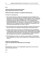 30 Landtag von Sachsen-Anhalt • Dritte Wahlperiode • Drs. 3/1503 • 23.04.1999 _______________________________________________________________________________ Zu 3. Präferenzrichtlinienverdingungsordnungen (Abg. Jürgen Scharf, CDU, Drs. 3/1195) Wortlaut der Kleinen Anfrage zur schriftlichen Beantwortung Ich frage die Landesregierung: 1. Über welche Erfahrungen verfügt die Landesregierung bei der öffentlichen Auf- tragsvergabe unter Berücksichtigung der Präferenzrichtlinien (Ausnahmeregelung zugunsten von Unternehmen aus Regionen der Europäischen Union mit Entwick- lungsrückstand bei der Vergabe öffentlicher Bau-, Liefer- und gewerblicher Dienstleistungsaufträge, MBI. LSA 1995 S. 2461 ff., und Richtlinie für die bevor- zugte Berücksichtigung von Leistungen von Architektinnen bzw. Architekten und Ingenieurinnen bzw. Ingenieuren mit Sitz in der Region der Europäischen Union mit Entwicklungsrückstand MBI. LSA 1995 S. 2228 f.)? 2. Sind insbesondere durch Anwendung der Richtlinien verstärkt Unternehmen aus Sachsen-Anhalt bei der öffentlichen Auftragsvergabe berücksichtigt worden? 3. In welcher Weise werden im Rahmen der Verdingungsordnung zur öffentlichen Auftragsvergabe die genannten Spielräume bei der Vergabe öffentlicher Aufträge - insbesondere Qualität, fachlicher oder technischer Wert, Ästhetik, Zweckmäßig- keit, Kundendienst, technische Hilfen, Leistungszeitpunkt, Ausführungszeitraum oder Frist sowie Preis und Honorar - ausreichend berücksichtigt? 4. Welche Maßnahmen werden von seiten des Landes ergriffen, um Mitarbeiterin- nen und Mitarbeiter des Landes mit den Spielräumen im Vergaberecht vertraut zu machen? Antwort der Landesregierung erstellt vom Ministerium für Wirtschaft und Technologie Zu 1: Beide Richtlinien werden von den Vergabestellen angenommen und es wird von guten Erfahrungen berichtet. Zu 2: Ja.