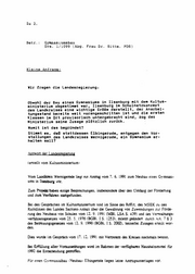 Zu 2. Betr.: Gymnasiumsbau Drs. l/1099 (Abg. Frau Dr. Sitte, POS) Kleine Anfrage: Wir fragen die Landesregierung: Obwohl der Bau ei ne s Gy �n as iu ms in Il se nb ur g mit de � Ku lt us •1nisterium ab ge st im •t wa r, Il se nb ur g 1• Sc hu ln et zk on ze pt des Landkreises eine wichtige Größe �arstellt, der Anarbei tu ng ss ta nd be re it s we it vo ra ng esch ri tten is t un d di e er st en Klassen im Ort provisorisch untergebracht sind, zog das Ministerium seine Zusage plötzlich zurück. Womit ist das begründet? Stim•t es, daß stattdessen Elbingerode, entgegen den Vor stellungen des Landkreises Wernigerode, ein Gy•nasium er halten soll? (erstellt vom Kultusministerium 1 Vom Landkreis Wernigerode liegt ein Äültrag vom 7. 6. 1991 zum Neubau eines Gymnasi . ums in Ilseuburg vor. Zum Ptojckt haben einige Besprechungen. insbesondere über den Umfang der Förderung und zum Verfahren stattgefunden. Bei den Gesprächen im Kultusministerium sind im Siitne des RdErl. des MSEK zu den Richtlinien des Landes Sachsen-Anhalt über die G�währung von Zuwendungen zur Förde rung des Neubaus von Schuien vom 12. 9. 1991 (MBl. LSA S. 439) und des Verwaltungs verfahrensgesetzes vom :5. 5. 1976 (BGBl. I S. 1253). zuletzt geändert durch .-\rt. 7 § 3 des Betreuungsgesetzes vom 12 9. 1990 (BGBl. I S. 2002). keinerlei Zusagen erteilt wor . den. Dies wurde im Gespräch vom 17. 1:2. 1991 mit Vertretern des Kreises nochmals betOnt. Bei Erfüllung aller VoraussetzUngen wird im Rahmen der verfügbaren Haushaltsmittel für 1992 die Entscheidung getroffen. Für l!inen Gymnasia.ibau • Neubau• Elbingerode liegen keine Antr:lgsunteriagen vor.