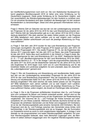 Landtag Brandenburg Drucksache 6/6186 6. Wahlperiode Antwort der Landesregierung auf die Kleine Anfrage Nr. 2448 des Abgeordneten Péter Vida der BVB/FREIE WÄHLER Gruppe Drucksache 6/5976 Babyboom? – Prognosen und Realität der demografischen Entwicklung Namens der Landesregierung beantwortet der Minister des Innern und für Kommu- nales die Kleine Anfrage wie folgt: Vorbemerkungen des Fragestellers: Bürger und Gemeindevertreter berichten aus vielen Orten Brandenburgs von voller werdenden Kindergärten und Kinderkrippen, die im Widerspruch zu den Prognosen abnehmender Geburtenzahlen stehen. Die Presse redet für das Jahr 2016 von einem „Baby-Boom“ in Brandenburg. Das Statis- tische Bundesamt wiederum hat jüngst eine Statistik veröffentlicht, nach der Bran- denburg im Jahr 2016 weiter wächst und auf 2,5 Millionen Einwohner zusteuert. Es bietet sich an, die reale demografische Entwicklung zu analysieren und einen Ver- gleich zu den Prognosen zu erstellen. Denn schon in der Antwort auf die Kleinen An- frage 2221 (Drucksache 6/5534) geht hervor, dass die Geburtenzahlen in den südli- chen Landkreisen Brandenburgs bereits 2014 erheblich höher waren als von der Landesregierung einige Jahre zuvor prognostiziert. Frage 1: Auf die Kleine Anfrage 2221 wurde mitgeteilt, dass dem Land selbst für das Jahr 2015 die Geburtenzahlen der Landkreise noch nicht vorliegen. Sollten die Daten für 2015 noch immer nicht vorliegen, wird um Erklärung gebeten, warum Geburten dem Land erst zwei Kalenderjahre später bekannt werden, warum den Vertretern der Landesregierung in den Ausschüssen des Landtages offensichtlich bereits aktuellere Zahlen vorliegen und warum das statistische Bundesamt bereits über die Bevölke- rungszahlen des Jahres 2016 verfügt. Wie ist das erklärlich? zu Frage 1: Die Geburtenzahlen für das Jahr 2015 lagen im Spätsommer 2016 vor und wurden im August 2016 im Statistischen Bericht A I 4 / A V 2 – j / 15 (Tabelle 2) u. a. im Internet https://www.statistik-berlin-branden- burg.de/publikationen/stat_berichte/2016/SB_A01-04-00_2015j01_BB.pdf) veröffent- licht. Sie lassen sich auch dem mittlerweile veröffentlichten Statistischen Jahrbuch 2016 des Amtes für Statistik Berlin-Brandenburg entnehmen. Bevölkerungszahlen des Jahres 2016 liegen nach Angaben des Statistischen Bundesamtes aufgrund von Verzögerungen von mindestens acht Monaten gegenüber den ursprünglich geplan- Datum des Eingangs: 08.03.2017 / Ausgegeben: 13.03.2017