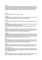 zu Frage 9: Das in Auftrag gegebene schallschutztechnische Gutachten, das auch die Auswirkungen auf die Ortsla- gen Groß Glienicke und Seeburg untersuchen wird, liegt noch nicht vor. Wegen der näheren Einzelhei- ten nehme ich auf die Antwort zu Frage 2 Bezug.