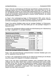 Landtag Brandenburg Drucksache 6/10033 Frage 5: Sind der Landesregierung die Bildungen terroristischer und/oder krimineller Ver- einigungen bekannt, die in den Phänomenbereich PMK- rechts fallen? Wenn ja, um wel- che Vereinigungen handelt es sich hierbei? Bitte aufgeschlüsselt nach Ort, Landkreis, Da- tum des Bekanntwerdens. Welche Kenntnisse hat die Landesregierung über die Vernet- zungen bzw. personellen Überschneidungen zu anderen rechten Strukturen, wie rechten Kameradschaften, Parteien o. ä.? zu Frage 5: Der Landesregierung liegen im Phänomenbereich PMK -rechts- keine Er- kenntnisse im Zusammenhang mit der Bildung bzw. Existenz von terroristischen und/oder kriminellen Vereinigungen im Land BB für den Monat September 2018 vor. Frage 6: Aus welchen Straftaten setzen sich die “sonstigen Straftaten” im Phänomenbe- reich PMK-rechts zusammen? Wie viele Delikte gab es in den jeweiligen Kategorien im September 2018? zu Frage 6: Die nachfolgende Auflistung enthält eine Aufschlüsselung der in Beantwortung der Frage 1 aufgeführten 114 „sonstigen Straftaten“. Verletzte Anzahl Bezeichnung der Straftat Rechtsnorm der Fälle Verwenden von Kennzeichen § 86a StGB 83 verfassungswidriger Organisationen Störung des öffentlichen Friedens durch § 126 StGB 1 Androhung von Straftaten Volksverhetzung § 130 StGB 13 Falsche Verdächtigung § 164 StGB 1 Beleidigung § 185 StGB 8 Nötigung § 240 StGB 1 Bedrohung § 241 StGB 1 Sachbeschädigung § 303 StGB 5 Gemeinschädliche Sachbeschädigung § 304 StGB 1 Anzahl der sonstigen Delikte im Land BB 114 Frage 7: Wie viele Nachmeldungen rechtsextremistisch motivierter Straftaten gab es bis zum 30. September für das Jahr 2018? zu Frage 7: Der Landesregierung wurden bis zum Zeitpunkt der Erhebung für die Monate Januar bis August 2018 insgesamt 123 Straftaten nachgemeldet. Frage 8: Wie viele dieser nachgemeldeten Straftaten waren Gewalttaten? Bitte aufge- schlüsselt nach Ort, Delikt, Tatzeit, Tatort, Landkreis, Herkunftsland der/s Opfer/s, Anzahl der Opfer und der Täter, Tat nach dem Strafgesetzbuch angeben. Welche dieser Straftaten waren extremistisch ausgeprägt? Welchen Kategorien im Themenfeld Hasskriminalität (fremdenfeindlich, antisemitisch, Gewalt gegen Linke, Gewalt gegen sonstige politische Gegner) sind diese Taten zuzuordnen? -3-