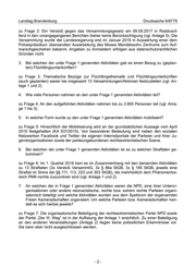 Landtag Brandenburg Drucksache 6/8779 zu Frage 2: Ein Verstoß gegen das Versammlungsgesetz am 09.09.2017 in Raddusch fand in den vorangegangenen Berichten bisher keine Berücksichtigung (vgl. Anlage 5). Die Versammlung wurde der Landesregierung erst im Januar 2018 in Auswertung einer dem Polizeipräsidium übersandten Ausarbeitung des Moses Mendelssohn Zentrums zum Auf- marschgeschehen bekannt. Angaben zu Anmeldern erfolgen aus datenschutzrechtlichen Gründen nicht. 3. Bei welchen der unter Frage 1 genannten Aktivitäten gab es einen Bezug zu (geplan- ten) Flüchtlingsunterkünften? zu Frage 3: Thematische Bezüge zur Flüchtlingsthematik und Flüchtlingsunterkünften (auch geplanten) waren bei insgesamt 13 Versammlungen/Aktionen festzustellen (vgl. An- lage 1 und 2). 4. Wie viele Personen nahmen an den unter Frage 1 genannten Aktivitäten teil? zu Frage 4: An den aufgeführten Aktivitäten nahmen bis zu 2.600 Personen teil (vgl. Anla- ge 1 bis 3). 5. In welcher Form wurde zu den unter Frage 1 genannten Aktivitäten mobilisiert? zu Frage 5: Hinsichtlich der Mobilisierung wird an der grundsätzlichen Aussage vom April 2015 festgehalten (KA 537/2015). Von besonderer Bedeutung sind neben den sozialen Netzwerken Facebook und Twitter die eigenen Internetportale der Parteien und ihrer Ju- gendorganisationen sowie der parteiungebundenen rechtsextremistischen Szene. 6. Bei welchen der unter Frage 1 genannten Aktivitäten ist es zu welchen Straftaten ge- kommen? zu Frage 6: Im 1. Quartal 2018 kam es im Zusammenhang mit den benannten Aktivitäten zu 13 Straftaten (3x Verstoß VersammlG, 3x § 86a StGB, 3x § 185 StGB, jeweils eine Straftat im Sinne der §§ 111, 113, 223 und 303 StGB), die mehrheitlich dem Phänomenbe- reich PMK-rechts zuzuordnen sind (vgl. Anlage 1 und 2). 7. An welchen der in Frage 1 genannten Aktivitäten waren die NPD, eine ihrer Unteror- ganisationen oder andere neonazistische, rechte bzw. extrem rechte Parteien organi- satorisch beteiligt und welche Aktivitäten wurden aus dem Spektrum der sogenannten Freien Kameradschaften organisiert. Um welche Parteien bzw. Kameradschaften han- delt es sich hierbei jeweils? zu Frage 7: Die organisatorische Beteiligung der rechtsextremistischen Partei NPD sowie der Partei „Der III. Weg“ ist in der Auflistung der Anlage 1 ersichtlich. Zu einer Beteiligung an den anderen Veranstaltungen (Anlage 2) liegen keine polizeilichen Erkenntnisse vor. Sie kann aber nicht ausgeschlossen werden. -2-
