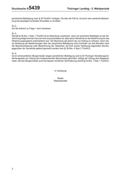 Drucksache 5/ 5439 Thüringer Landtag - 5. Wahlperiode persönliche Beteiligung nach § 38 ThürKO vorliegen. Ob dies der Fall ist, ist durch eine wertende Betrach- tung des jeweiligen konkreten Einzelfalls zu ermitteln. Zu 2.: Auf die Antwort zu Frage 1 wird verwiesen. Zu 3.: Gemäß § 38 Abs. 4 Satz 1 ThürKO ist ein Beschluss unwirksam, wenn ein persönlich Beteiligter an der Ab- stimmung teilgenommen hat und nicht auszuschließen ist, dass seine Teilnahme an der Abstimmung für das Abstimmungsergebnis entscheidend war. Der Beschluss gilt jedoch als von Anfang an wirksam, wenn die- se Verletzung der Bestimmungen über die persönliche Beteiligung nicht innerhalb von drei Monaten nach der Beschlussfassung unter Bezeichnung der Tatsachen, die eine solche Verletzung begründen können, gegenüber der Gemeinde geltend gemacht worden sind (§ 38 Abs. 4 Satz 2 ThürKO). Zu 4.: Ist ein ehrenamtlicher Bürgermeister wegen persönlicher Beteiligung nach § 20 Thüringer Verwaltungsver- fahrensgesetz am Vollzug des entsprechenden Beschlusses gehindert, obliegt der Vollzug dem Beigeord- neten, der den Bürgermeister auch bei dessen rechtlicher Verhinderung vertritt (§ 32 Abs. 1 Satz 1 ThürKO). In Vertretung Rieder Staatssekretär 2