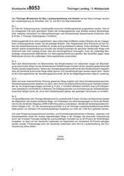 Thüringer Landtag 5. Wahlperiode Drucksache 5/ 8053 21.07.2014 Kleine Anfrage des Abgeordneten Kuschel (DIE LINKE) und Antwort des Thüringer Ministeriums für Bau, Landesentwicklung und Verkehr Beschädigung von unbefestigten Wegen durch Umleitungsverkehr während der Vollsperrung der L 2149 in der Ortslage Gräfenroda Die Kleine Anfrage 3984 vom 27. Mai 2014 hat folgenden Wortlaut: Wegen umfassender Sanierungsmaßnahmen ist die Landesstraße (L) 2149 in der Ortstlage Gräfenroda voll gesperrt. Die Umleitungsstrecke ist großräumig über die Bundesstraße (B) 88, die Bundesautobahn (A) 71 und die L 3004 bzw. die B 88, L 1046 und die L 3004 ausgewiesen. Ein Teil des Umleitungsverkehrs erfolgt jedoch über unbefestigte Wirtschaftswege, die als Wander-, Rad- und Landwirtschaftswege ausgewiesen sind. Dies betrifft auch einen Weg in der Gemarkung Liebenstein entlang der Wilden Gera zwischen Fried- hof und Sportplatz. Durch diesen Umleitungsverkehr wurden die unbefestigten Wege stark beschädigt. Die Gemeinde Liebenstein ist derzeit finanziell nicht in der Lage, die Instandsetzung der unbefestigten Wege zu veranlassen. Der Bürgermeister der Gemeinde Liebenstein hat sich in diesem Zusammenhang an das Stra- ßenbauamt Mittelthüringen gewandt und gefordert, dass der Straßenbaulastträger der L 2149 dafür Sorge trägt, dass in der Phase der Vollsperrung kein Umleitungsverkehr über die unbefestigten Wirtschaftswege erfolgt. Das Straßenbauamt Mittelthüringen wies diese Forderung zurück und verwies auf die Zuständig- keit der Polizei- und Ordnungsbehörden. Ordnungsbehörde für die Gemeinde Liebenstein ist die Verwal- tungsgemeinschaft "Oberes Geratal". Gegenüber dieser Ordnungsbehörde hat der Bürgermeister von Lie- benstein jedoch keine Weisungsbefugnis. Ich frage die Landesregierung: 1. Inwieweit muss das Straßenbauamt Mittelthüringen als Straßenbaulastträger der L 2149 dafür Sorge tragen, dass in der Phase der Vollsperrung der Landesstraße in der Ortslage Gräfenroda kein Umlei- tungsverkehr über unbefestigte Wirtschaftswege erfolgt? 2. Welche Absprachen gab es zwischen dem Straßenbauamt Mittelthüringen, der Verwaltungsgemeinschaft "Oberes Geratal" und den Gemeinden Gräfenroda und Liebenstein in Bezug auf die Verhinderung eines Umleitungsverkehrs über Wirtschaftswege in der Phase der Vollsperrung der L 2149 in der Ortslage Gräfenroda? 3. Gegen wen hat die Gemeinde Liebenstein in welchem Umfang Schadensersatzansprüche wegen der Beschädigung von unbefestigten Wegen in ihrer Flur infolge von Umleitungsverkehren in der Phase der Vollsperrung der L 2149 in der Ortslage Gräfenroda? 4. Welche Fördermöglichkeiten bestehen für die Gemeinde Liebenstein zur Beseitigung der Schäden an den unbefestigten Wegen in ihrer Flur infolge von Umleitungsverkehren in der Phase der Vollsperrung der L 2149 in der Ortslage Gräfenroda? Welche Förderungsvoraussetzungen müssen dabei erfüllt sein? Druck: Thüringer Landtag, 30. Juli 2014