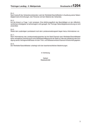 Thüringer Landtag - 5. Wahlperiode Drucksache 5/ 1204 Zu 4.: Nach Auskunft des Verbandsvorsitzenden nutzt der Werkleiter/Geschäftsleiter in Ausübung seiner Neben- tätigkeit keine Einrichtungen, kein Personal und kein Material des Verbandes. Zu 5.: Auf die Antwort zu Frage 1 wird verwiesen. Eine Abführungspflicht des Beschäftigten an den (öffentlich- rechtlichen) Arbeitgeber ist tarifvertraglich nicht geregelt. Die Thüringer Nebentätigkeitsverordnung ist nicht anwendbar. Zu 6.: Weder dem zuständigen Landratsamt noch dem Landesverwaltungsamt liegen hierzu Informationen vor. Zu 7.: Nach Informationen des Landesverwaltungsamtes hat die Stadt Eisenach dem Werkleiter/Geschäftsleiter keine vertragliche Zusicherung für eine Weiterbeschäftigung bei der Stadt im Falle der Aufhebung oder Kün- digung seines Vertragsverhältnisses mit dem Trink- und Abwasserverband Eisenach-Erbstromtal gegeben. Zu 8.: Der Werkleiter/Geschäftsleiter unterliegt nicht den beamtenrechtlichen Bestimmungen. In Vertretung Geibert Staatssekretär 3