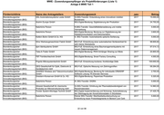 MWE - Zuwendungsempfänger als Projektförderungen (Liste 1) Anlage 6 MWE Teil 1 Förderrichtlinie Name des Antragstellers Zuwendungszweck Jahr Betrag Brandenburgischer Natürliche Person Kl. BIG: "Machbarkeitsstudie zur Neustrukturierung einer 2016 3.000,00 Innovationsgutschein (BIG) kundenspezifischen Fertigung" Brandenburgischer dropnostix GmbH BIG-FuE: Validierung eines Sensor-basierten Online- 2016 49.998,97 Innovationsgutschein (BIG) Kuhmonitoringsystems Brandenburgischer Opitz Holzbau GmbH & Co. KG Kleiner BIG-Transfer: Machbarkeitsstudie an einer neuartigen 2016 2.128,65 Innovationsgutschein (BIG) Holzdeckenkonstruktion Brandenburgischer Fläminger Genussland GmbH Großer BIG-Transfer: Entw. eines Verfahrens zur Herstellung 2016 15.000,00 Innovationsgutschein (BIG) von gewürztem Speck aus Wollschweinen nach Lardo Art Brandenburgischer ESW Biomasse GmbH Kl. BIG-Transfer: Machbarkeitsstudie: Bauwerksbegrünung an 2016 2.950,00 Innovationsgutschein (BIG) Natursteineinhausungen Brandenburgischer 45info GmbH BIG-FuE: Entwicklung einer Raumvermessungs-Software für 2016 45.624,31 Innovationsgutschein (BIG) die Immobilienwirtschaft Brandenburgischer Natürliche Person Gr.-BIG-Transfer: Entwicklung innovativer 2016 15.000,00 Innovationsgutschein (BIG) Gestaltungskonzepte für eine digitalisierte Fabrikstruktur Brandenburgischer CHIRACON GmbH BIG-FuE: Entwicklung Wirkstoffsynthese IEPA 2017 48.773,87 Innovationsgutschein (BIG) Brandenburgischer Medipan GmbH Großer BIG-Transfer: Entwicklung einer LED-Flureszenz- 2017 15.000,00 Innovationsgutschein (BIG) Quelle Brandenburgischer Mosterei Ketzür GmbH Kleiner BIG-Transfer: Konzeptentwicklung zur Wertschöpfung 2017 2.950,00 Innovationsgutschein (BIG) von Kernobsttrester Brandenburgischer Natürliche Personen- Die Energieerzeuger Kleiner BIG-Transfer: MAREP - Studie 2017 3.000,00 Innovationsgutschein (BIG) GbR Brandenburgischer SCHÖNBORNER ARMATUREN GmbH Gr. BIG-Transfer: Entwicklung einer digitalisierungsfähigen 2017 15.000,00 Innovationsgutschein (BIG) Fertigungsorganisation Brandenburgischer rtw Röntgen-Technik Dr. Warrikhoff GmbH Gr.BIG-Transfer: Hohlkörpertarget für Röntgenquelle 2017 15.000,00 Innovationsgutschein (BIG) & Co. KG Brandenburgischer navtec Microwave Gesellschaft für Kl. BIG-Transfer: SeSL-Studie zur elektromagnetischen 2017 3.000,00 Innovationsgutschein (BIG) Mikrowellen- und Systemtechnik mbH Schirmung von unbemannten Lfz. Brandenburgischer Meine-Energie GmbH BIG-FuE: MeineEnergie APP 2017 49.900,21 Innovationsgutschein (BIG) Brandenburgischer ENVIRAL Oberflächenveredelung GmbH BIG-FuE: Forschung, Entwicklung u. Planung von neuen Ober- 2017 49.706,46 Innovationsgutschein (BIG) flächentechniken Brandenburgischer Natürliche Person Kleiner BIG-Transfer: Machbarkeitsstudie für 2017 3.000,00 Innovationsgutschein (BIG) Kleinwasseraufbereitungsanlagen 20 von 96