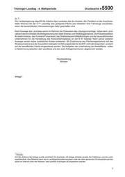 Thüringer Landtag - 4. Wahlperiode Drucksache 4/ 5500 Zu 7.: Die Landesregierung begrüßt die Initiative des Landrates des Ilm-Kreises, den Pendlern an der Anschluss- stelle Ilmenau-Ost der A 71 zukünftig eine geeignete Fläche zum Abstellen ihrer Fahrzeuge anzubieten, wenn die baurechtlichen Voraussetzungen dafür geschaffen sind. Nach Aussage des Landrates waren im Rahmen der Diskussion des L|sungsvorschlags neben dem Land- ratsamt des Ilm-Kreises die Anliegerkommunen Stadt Ilmenau und Wolfberggemeinde, die Polizeiinspektion Arnstadt-Ilmenau, das Forstamt Frauenwald, das Straßenbauamt Mittelthüringen und die bauausführenden Unternehmen für die Herstellung des Kreisverkehrsplatzes an der B 87 beteiligt. Nach seiner weiteren Aussage werden keine zusätzlichen Kosten entstehen. Mit Zustimmung des Flächeneigentümers soll das Rückbaumaterial aus der bauzeitlich bedingten Umfahrungsstraße für die B 87 nicht abtransportiert, sondern auf der betreffenden Fläche eingearbeitet werden. Die Aufgaben der Unterhaltung der AbstellÀäche sollen in Abstimmung zwischen dem Landkreis und den zwei Anliegerkommunen abgesichert werden. Wucherpfennig Minister Anlage*) *) Hinweis: Auf den Abdruck der Anlage wurde verzichtet. Ein E[emplar mit Anlage erhielten jeweils die Fraktionen und die Land- tagsbibliothek. Des Weiteren kann sie im Landtagsinformationssystem unter der oben genannten Drucksachennummer sowie im Internet unter der Adresse: www.parldok.thueringen.de eingesehen werden. 3