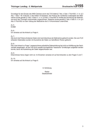 Thüringer Landtag - 5. Wahlperiode Drucksache 5/ 3155 Grundlage für den Einsatz des IMSI-Catchers durch das TLfV bildet § 7 Abs. 4 Satz 1 ThürVSG i. V. m. § 3 Abs. 1 Satz 1 Nr. 6 Buchst. a des Artikel 10-Gesetzes. Die Prüfung der rechtlichen Zulässigkeit der Maß- nahme wurde gemäß § 7 Abs. 4 Satz 5 i. V. m. § 5 Abs. 5 ThürVSG im Vorfeld der Anordnung der Maßnah- me durch den Thüringer Innenminister vorgenommen. Weiterhin wurde gemäß § 7 Abs. 4 Satz 5 i. V. m. § 5 Abs. 6 ThürVSG vor dem Vollzug der Maßnahme die G 10-Kommission unterrichtet. Zu 5.: Entfällt Zu 6.: Ich verweise auf die Antwort zu Frage 4. Zu 7.: Alle durch die Polizei erhobenen Daten sind nach Abschluss der Maßnahme gelöscht worden. Die vom TLfV erfassten Datensätze wurden mit Ausnahme der Daten zur betroffenen Person gelöscht. Zu 8.: Die in der Antwort zu Frage 1 angesprochene polizeiliche Datenerhebung hat nicht zur Aufklärung des Sach- verhalts beigetragen, da der Fall durch parallel durchgeführte "klassische" Ermittlungen aufgeklärt werden konnte, bevor die Auswertung der Daten abgeschlossen war. Zu 9.: Erkenntnisse hierzu liegen nicht vor. Im Einzelnen verweise ich auf die Antworten zu den Fragen 3 und 7. Zu 10.: Ich verweise auf die Antwort zu Frage 9. In Vertretung Rieder Staatssekretär 3