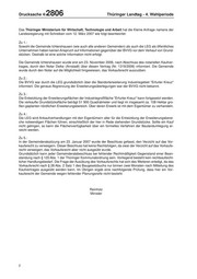 Drucksache 4/ 2806 Thüringer Landtag - 4. Wahlperiode Das Thüringer Ministerium für Wirtschaft, Technologie und Arbeit hat die Kleine Anfrage namens der Landesregierung mit Schreiben vom 12. März 2007 wie folgt beantwortet: Zu 1.: Sowohl die Gemeinde Ichtershausen (wie auch alle anderen Gemeinden) als auch die LEG als öffentliches Unternehmen haben keinen Anspruch auf Informationen gegenüber der BVVG vor dem Verkauf von Grund- stücken. Deshalb ist eine solche Information nicht erfolgt. Die Gemeinde Ichtershausen wurde erst am 23. November 2006, nach Abschluss des notariellen Kaufver- trages, durch den Notar Deike (Arnstadt) über diesen Vertrag (Nr. 1319/2006) informiert. Die Gemeinde wurde durch den Notar auf die Möglichkeit hingewiesen, das Vorkaufsrecht auszuüben. Zu 2.: Die BVVG war durch die LEG grundsätzlich über die Standorterweiterung Industriegebiet "Erfurter Kreuz" informiert. Die genaue Abgrenzung der Erweiterungsüberlegungen war der BVVG nicht bekannt. Zu 3.: Die Entwicklung der Erweiterungsflächen der Industriegroßfläche "Erfurter Kreuz" kann fortgesetzt werden. Die verkaufte Grundstücksfläche beträgt 51 900 Quadratmeter und liegt im insgesamt ca. 108 Hektar gro- ßen geplanten nördlichen Erweiterungsbereich. Über deren Erwerb ist mit dem Eigentümer zu verhandeln. Zu 4.: Die LEG wird Ankaufverhandlungen mit den Eigentümern aller für die Entwicklung der Erweiterungsberei- che notwendigen Flächen führen, einschließlich der hier in Rede stehenden Grundstücke. Sollte ein Kauf nicht gelingen, so kann die Flächenverfügbarkeit über ein formelles Verfahren der Baulandumlegung er- reicht werden. Zu 5.: In der Gemeinderatssitzung am 23. Januar 2007 wurde der Beschluss gefasst, den Verzicht auf das Vor- kaufsrecht zu verweigern. Dieser Beschluss hat keine Rechtsfolgen, da zwar der Verzicht auf das Vorkaufs- recht verweigert, das Vorkaufsrecht aber nicht ausgeübt wurde. Grundsätzlich kann jeder Gemeinderatsbeschluss bei fehlender Rechtmäßigkeit Gegenstand einer Bean- standung nach § 120 Abs. 1 der Thüringer Kommunalordnung sein. Vorliegend besteht kein rechtsaufsicht- licher Handlungsbedarf. Die Frage der Ausübung des Vorkaufsrechts hat sich des Weiteren erledigt, da das Vorkaufsrecht nach § 28 Abs. 2 Satz 1 des Baugesetzbuchs nur binnen zwei Monaten nach Mitteilung des Kaufvertrages ausgeübt werden kann. Im Übrigen ergab eine nachfolgende Prüfung, dass hier ein Vor- kaufsrecht der Gemeinde wegen fehlender Planungsreife nicht besteht. Reinholz Minister 2