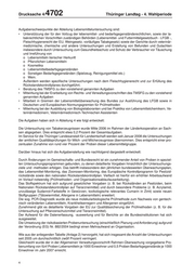 Drucksache 4/ 4702 Thüringer Landtag - 4. Wahlperiode Aufgabenschwerpunkte der Abteilung Lebensmitteluntersuchung sind: • Unterstützung der für den Vollzug der lebensmittel- und bedarfsgegenständerechtlichen, sowie der ta- bakrechtlichen Vorschriften zuständigen Behörden (Lebensmittel- und Futtermittelgesetzbuch - LFGB -, Fleischhygienerecht der EU, Weingesetz, vorläufiges Tabakgesetz) sowie der Gerichte durch veterinär- medizinische, chemische und andere Untersuchungen und Erstellung von Befunden und Gutachten insbesondere durch Untersuchung zum Gesundheitsschutz und Schutz der Verbraucher vor Täuschung und Irreführung von o Lebensmitteln tierischer Herkunft o Pflanzlichen Lebensmitteln o Kosmetika o Lebensmittelbedarfsgegenständen o Sonstigen Bedarfsgegenständen (Spielzeug, Reinigungsmittel etc.) o Wein. Außerdem werden spezifische Untersuchungen nach dem Fleischhygienerecht und zur Erfüllung des Rückstandskontrollplanes durchgeführt. • Beratung des TMSFG zu den vorstehend genannten Aufgaben • Mitwirkung bei der Erarbeitung von Rechts- und Verwaltungsvorschriften des TMSFG zu den vorstehend genannten Aufgaben • Mitarbeit in Gremien der Lebensmittelüberwachung des Bundes zur Ausführung des LFGB sowie in Deutschen und Europäischen Normungsgremien für Prüfmethoden • Mitwirkung bei der Ausbildung von Biologielaboranten und bei Praktika von Lebensmittelchemikern, Ve- terinärmedizinern, Veterinärmedizinisch-Technischen Assistenten Die Aufgaben haben sich in Abteilung 4 wie folgt entwickelt: Die Untersuchung von Tabakerzeugnissen wurde Mitte 2006 im Rahmen der Länderkooperation an Sach- sen abgegeben. Dies entspricht etwa 0,2 Prozent der Gesamtaufgaben. Im Service für die Thüringer Landesanstalt für Landwirtschaft werden seit Januar 2008 die Untersuchungen der amtlichen Qualitätsprüfungen für Milch- und Milcherzeugnisse übernommen. Dies entspricht einer pro- zentualen Zunahme von rund vier Prozent der Proben dieser Lebensmittelgruppe. Darüber hinaus hat sich die Aufgabenstellung wie nachfolgend dargestellt entwickelt: Durch Änderungen im Gemeinschafts- und Bundesrecht ist ein zunehmender Anteil von Proben in speziel- len Untersuchungsprogrammen gebunden, zu denen detaillierte Vorgaben hinsichtlich der Untersuchungs- ziele und -methoden erfolgen. Das betrifft insbesondere den jährlichen bundesweiten Überwachungsplan, das Lebensmittel-Monitoring, das Zoonosen-Monitoring, das Europäische Kontrollprogramm für Pestizid- rückstände sowie den nationalen Rückstandskontrollplan. Vielfach ist hierfür ein erhöhter Arbeitsaufwand im Vorlauf notwendig (Prüfmethoden- und Organisationsablaufausarbeitung). Das Stoffspektrum hat sich aufgrund gesetzlicher Vorgaben (z. B. bei Rückständen an Pestiziden, beim Nationalen Rückstandskontrollplan auf Tierarzneimittel) und durch besondere Probleme (z. B. Acrylamid, unzulässige Sudanrot-Farbstoffe in Gewürzen, toxikologische relevantes Cumarin in Zimt) sowie neuen Stoffgruppen (Tätowiermittel, Allergene in Lebensmitteln) erweitert. Die sog. PCR-Diagnostik wurde als neue molekularbiologische Prüfmethode zum Nachweis von gentech- nisch veränderten Lebensmitteln, Krankheitserregern und Allergenen eingeführt. Zunehmend gibt es detaillierte Vorgaben der EU zur Qualitätssicherung der Prüfmethoden (z. B. für die Untersuchung auf Pflanzenschutzmittel und Tierarzneimittel). Der Aufwand für die Datenerfassung, -auswertung und für Berichte an die Bundesinstitutionen hat sich ausgeweitet. Die Umsetzung der risikobasierten Probenuntersuchung (einschließlich Planung und Anforderung) aufgrund der Verordnung (EG) Nr. 882/2004 bedingt einen Mehraufwand an Organisation. Wie aus der anliegenden Tabelle (Anlage 2) hervorgeht, hat sich insgesamt die Anzahl der Untersuchungen seit 2005 um durchschnittlich zwölf Prozent verringert. Gleichwohl wurde der in der Allgemeinen Verwaltungsvorschrift Rahmen-Überwachung vorgegebene Pro- benumfang von fünf Proben Lebensmitteln je 1000 Einwohner und 0,5 Proben Bedarfsgegenstände je 1000 Einwohner im Jahr 2007 erreicht. 4