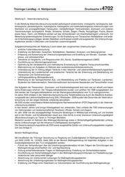 Thüringer Landtag - 4. Wahlperiode Drucksache 4/ 4702 Abteilung 5 - Veterinäruntersuchung In der Abteilung Veterinäruntersuchung werden pathologisch-anatomische, virologische, serologische, bak- teriologische, parasitologische, mykologische, histologische und molekularbiologische Untersuchungen zum Nachweis von anzeigepflichtigen Tierseuchen, meldepflichtigen Tierkrankheiten, Zoonosen und anderen Tiererkrankungen durchgeführt. Rinder, Schweine, Schafe, Ziegen, Pferde, Nutzgeflügel, Fische, Bienen sowie Haus-, Heim- und Wildtiere werden auf das Vorhandensein von Krankheitserregern untersucht. Zur Bewertung epidemiologischer Entwicklungen, für die Erarbeitung von Tierseuchen-Notfallplänen und ande- ren Entscheidungsgrundlagen werden Statistiken und Analysen erstellt und ausgewertet. Die Untersuchungs- ergebnisse werden in Befunden und Gutachten zusammengestellt. Aufgabenschwerpunkte der Abteilung 5 sind neben den vorgenannten Untersuchungen: • amtliche Futtermitteluntersuchung • Erstellung von Befunden, Gutachten, Notfallplänen, Statistiken, Analysen, und Stellungnahmen • Erfassung und Auswertung der Untersuchungsergebnisse und Erstellung von Monats-, Quartals-, Halb- jahres- und Jahresberichten • Teilnahme an Vergleichs- und Ringversuchen (EU, Bund), Qualitätsmanagement (QMS) • Durchführung von Monitoringprogrammen • Optimierung der Gerätetechnik und methodische Einarbeitung für mögliche Tierseuchenkrisenfälle • Wahrnehmung von Aufgaben im Rahmen des Landestierseuchenkrisenzentrums • Unterstützung der im Vollzug tätigen Tierärzte in den Veterinär- und Lebensmittelüberwachungsämtern • Unterstützung der Landwirtschaft und praktischen Tierärzte bei der Erkennung und Bekämpfung von Tierseuchen und Tiererkrankungen • Lehrlingsausbildung (Biologielaborant) • Mitwirkung an der fachspezifischen Aus- und Weiterbildung und Praktika von Tierärzten, Landwirten, Studenten der Veterinärmedizin, Veterinärmedizinisch-technischen Assistenten und Tierarzthelfer/-innen Die Aufgaben der Tierseuchen-, Zoonosen- und Krankheitsdiagnostik sind nach wie vor aktuell und haben keine Änderungen erfahren. Die Tiergesundheitsdienste wurden zum größten Teil 1996 ausgegliedert. Zur Zeit werden der Fischgesundheitsdienst und der Bienengesundheitsdienst vom TLLV wahrgenommen. Im Jahre 2003 erfolgte in der Veterinäruntersuchung eine Teilakkreditierung durch die Staatliche Anerken- nungsstelle der Lebensmittelüberwachung (SAL) Wiesbaden. 2008 wurden alle Dezernate der Veterinärun- tersuchung von der obigen Behörde vollständig akkreditiert. Ab 2005 wurden verschiedene Molekularbiologische Nachweisverfahren (PCR-Diagnostik) in der Veterinär- untersuchung etabliert. In den letzten Jahren sind einige Arbeitsgebiete neu entstanden. Dies umfasst die TSE-Untersuchungen von Gehirnproben von landwirtschaftlichen Nutztieren (Rinder, Schafe und Ziegen). Im Jahr 2006 trat die anzeigepflichtige Tierseuche Bluetongue in Mitteleuropa erstmalig auf und breitete sich in den Rinder- und Schafbeständen rasant aus. Dies führte zu einer intensiven Untersuchungstätigkeit (Blutuntersuchungen) an Tieren in Thüringer Betrieben. Weiterhin wurden im Rahmen des Wildvogel-Monitorings sowie in Wirtschaftsgeflügelbeständen umfang- reiche Untersuchungen auf die Influenza A (Geflügelpest) durchgeführt. Die Gesamtuntersuchungszahlen ab 2005 sowie ausgewählte Zahlen von Untersuchungsgebieten ergeben sich aus Anlage 3. Bereich Maßregelvollzug Mit Inkrafttreten der Thüringer Verordnung zur Regelung von Zuständigkeiten im Maßregelvollzug vom 14. Juli 2005 (GVBl. Nr. 12/2005, Seite 299) ist der Bereich Maßregelvollzug mit folgenden Aufgaben in den Zuständigkeitsbereich des TLLV eingegliedert worden: • Führen der Verhandlungen über die Unterbringungskostensätze mit den Trägern der Einrichtungen des Maßregelvollzugs einschließlich Vor- und Nachbereitung • Prüfung sicherheitsrelevanter Fragen im Maßregelvollzug; Erstellung von Sicherheitskonzepten • Durchführung von Sicherheitsbegehungen in den Maßregelvollzugseinrichtungen zur Feststellung orga- nisatorischer oder personeller Mängel • Abrechnung von interkurrenten Leistungen für Maßregelvollzugspatienten • Abrechnung der Unterbringungskosten für Maßregelvollzugspatienten • Erstellung und Pflege einer Datenbank zur Dokumentation der Durchführung des Maßregelvollzugs 5