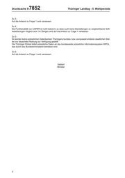 Drucksache 5/ 7852 Thüringer Landtag - 5. Wahlperiode Zu 3.: Auf die Antwort zu Frage 1 wird verwiesen. Zu 4.: Die Funktionalität von CAPER ist nicht bekannt, so dass auch keine Darstellungen zu vergleichbaren Soft- warelösungen möglich sind. Im Übrigen wird auf die Antwort zu Frage 1 verwiesen. Zu 5.: Es werden keine polizeilichen Datenbanken Thüringens bundes- bzw. europaweit anderen staatlichen Stel- len zur dauernden Nutzung zur Verfügung gestellt. Die Thüringer Polizei liefert polizeiliche Daten an das bundesweite polizeiliche Informationssystem INPOL, das durch das Bundeskriminalamt betrieben wird. Zu 6.: Auf die Antwort zu Frage 1 wird verwiesen. Geibert Minister 2