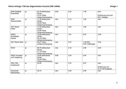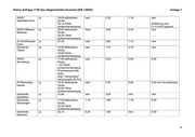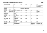 Kleine Anfrage 1720 des Abgeordneten Kuschel (DIE LINKE) Anlage 1 Aufgaben- Differenzie- Beseitigungs- Direkteinleiter Volleinleiter- Teileinleiter- Niederschlags- träger rung Beseiti- gebühr in -gebühr in gebühr in gebühr in wassergebühr gungs- und €/m³ €/m³ €/m³ €/m³ in €/m² befestigte Einleitungs- Fläche/a gebühr ohne Straßen und ohne Unterscheidung der Bezugsfläche Gemeinde ja 22,57 nein nein 1,13 nein Eichenberg Gemeinde ja 29,62 nein nein 1,20 nein Gumperda Gemeinde nein 39,71 nein nein Bremsnitz es sind aufgrund der örtlichen Verhältnisse nur dezentral zu entsorgende Grundstücke vorhanden Gemeinde ja 28,16 nein 1,31 nein Mengenmaßstab 0,45 Mörsdorf m³ pro m² zusätzlich Gemeinde St. ja 31,00 nein 1,89 0,88 zum Frischwasserver- Gangloff brauch AZV Gleistal ja 17,79 abflusslose nein 2,76 1,53 nein Grube 29,81 Grundstücks- 0,78 bei kläranlage Vollbiologie ZWA Thüringer ja 11,00 abflusslose nein 3,32 2,10 nein Holzland Grube 30,00 Grundstücks- 1,18 bei Einführung zum kläranlage Vollbiologie 01.01.2012 wird derzeit vorbereitet 1