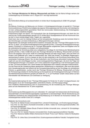 Drucksache 5/ 3143 Thüringer Landtag - 5. Wahlperiode Das Thüringer Ministerium für Bildung, Wissenschaft und Kultur hat die Kleine Anfrage namens der Landesregierung mit Schreiben vom 5. August 2011 wie folgt beantwortet: Zu 1.: Die frühkindliche Bildung ist bundeseinheitlich im Achten Buch Sozialgesetzbuch (SGB VIII) geregelt. Zu 2.: Die Bildung, Erziehung und Betreuung von Kindern in Kindertageseinrichtungen ist gemäß § 2 Thüringer Kommunalordnung (ThürKO) eine Aufgabe des eigenen Wirkungskreises der Kommunen und unterliegt da- mit dem verfassungsrechtlich garantierten Recht der kommunalen Selbstverwaltung. Die Kindertagesbe- treuung ist keine staatliche Aufgabe. Entsprechend liegen die Dienst- und Fachaufsicht über die Kindertageseinrichtungen und damit die Um- setzung des Förderungsauftrages gemäß § 22 ff. Achtes Buch Sozialgesetzbuch bei den Kommunen bzw. bei den in ihrem Auftrag tätigen freien Trägern der Jugendhilfe. Damit kann das Land nur bedingt Einfluss auf die konzeptionelle Gestaltung sowie die konkrete Arbeit in den Einrichtungen und deren Entwicklung zu Bildungseinrichtungen nehmen. Möglichkeiten der bedingten Einflussnahme bestehen einerseits über den "Thüringer Bildungsplan für Kin- der bis 10 Jahre". So hat jede Kindertageseinrichtung gemäß § 6 Abs. 3 Thüringer Kindertageseinrichtungs- gesetz (ThürKitaG) in Umsetzung der im Thüringer Bildungsplan aufgeführten Ziele und Aufgaben eine für sie verbindliche Konzeption zu erstellen und fortzuschreiben. Die Konzeption der Einrichtung bildet eine maßgebliche Grundlage für die Erteilung der Betriebserlaubnis gemäß § 45 Abs. 2 Satz 3 SGB VIII durch das Thüringer Ministerium für Bildung, Wissenschaft und Kultur. Die für die Aufgaben nach § 45 ff. SGB VIII zuständige Behörde soll dafür Sorge tragen, dass das Wohl von Kindern nicht gefährdet wird. Dabei ist insbesondere das "Wohl des Kindes" im jeweiligen Regelungszu- sammenhang zu sehen. Es ist zu messen an dem mit dem Aufenthalt in der Einrichtung verbundenen bzw. vereinbarten (Leistungs-)Zweck. Der mit dem Aufenthalt in der Einrichtung verbundene (Leistungs-)Zweck ergibt sich aus den einschlägigen bundes- sowie landesgesetzlichen Regelungen, die durch die Träger der Kindertageseinrichtungen umzusetzen und in ihrer praktischen Ausgestaltung in der Einrichtungskonzepti- on fest- und fortzuschreiben sind. Damit besteht die Möglichkeit einer weiteren bedingten Einflussnahme. Um die Praxis bei der Umsetzung dieser gesetzlichen Verpflichtung zu unterstützen, aber auch das einheit- liche Verwaltungshandeln der Aufsicht bei der Konzeptionsbeurteilung auf der Grundlage von einheitlichen Kriterien zu gewährleisten, wurden durch das Thüringer Ministerium für Bildung, Wissenschaft und Kultur die "Ermessensgrundsätze für die Beurteilung von Konzeptionen der Kindertageseinrichtungen im Rahmen des Betriebserlaubnisverfahrens gemäß § 45 SGB VIII i. V. m. § 9 ThürKitaG" erstellt. Diese stehen auf den Internetseiten des Ministeriums zum Download zur Verfügung. Zu 3.: Die Implementationsphase für den "Thüringer Bildungsplan für Kinder bis 10 Jahre" ist abgeschlossen; der Bildungsplan ist an den Kindertagesstätten verbindliche Arbeits- und Planungsgrundlage. Eine inhaltliche Weiterentwicklung wird im Zusammenhang mit der Erweiterung des Thüringer Bildungs- plans auf den Altersbereich bis 18 Jahre angestrebt. Zu 4.: Die Erweiterung des Bildungsplans bis zum vollendeten 18. Lebensjahr hat insbesondere die Entwicklungs- besonderheiten und die Entwicklungsaufgaben Jugendlicher zu berücksichtigen. Mit der Strukturierung und inhaltlichen Erarbeitung der entsprechenden Entwurfsfassung ist im Moment ein Konsortium befasst. Die Arbeitsergebnisse werden Ende 2012 vorliegen. Mitglieder des Konsortiums sind: - Frau Prof. Dr. Bärbel Kracke (Universität Erfurt, Lehrstuhl Entwicklungs- und Erziehungspsychologie), - Frau Prof. Dr. Ada Sasse (Humboldt-Universität zu Berlin, Institut für Erziehungswissenschaften, Abt. Grundschulpädagogik), - Frau Prof. Dr. Michaela Gläser-Zikuda (Friedrich-Schiller-Universität Jena, Lehrstuhl für Schulpädago- gik und Schulentwicklung), - Frau Jun.-Prof. Dr. Sandra Fleischer (Universität Erfurt, Erziehungswissenschaftliche Fakultät), - Frau Prof. Marianne Steffen-Wittek (Hochschule für Musik "Franz Liszt" Weimar, Institut für Musikpäda- gogik), - Frau Prof. Dr. Ulrike Stutz (Universität Erfurt, Erziehungswissenschaftliche Fakultät, Fachgebiet Kunst), 2