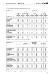 Drucksache 5/ 3044 Thüringer Landtag - 5. Wahlperiode Landkreis (LK) Umstufung Landesstraßen (in Kilometer) zu Kreisstraßen Gemeindestraßen Summe Kyffhäuserkreis 27 44 71 LK Nordhausen 51 22 73 Saale-Holzland-Kreis 22 2 24 LK Saalfeld-Rudolstadt 40 0 40 LK Schmalkalden-Meiningen 10 11 21 LK Sonneberg 0 2 2 Saale-Orla-Kreis 30 32 62 LK Sömmerda 3 10 13 Unstrut-Hainich-Kreis 55 53 108 Wartburgkreis 12 19 31 Stadt Eisenach 3 0 3 Stadt Erfurt 0 0 0 Stadt Gotha 0 0 0 Stadt Jena 0 0 0 Stadt Weimar 0 0 0 Stadt Suhl 0 0 0 Summe 412 285 703 Informationen zu Abstufungsabsichten von Kreisstraßen in Baulast der Landkreise und kreisfreien Städte liegen der Landesregierung derzeit nicht vor. Zu 7. a: Die Straßen werden in dem gesetzlich geforderten, der Verkehrsbedeutung entsprechenden ordnungsge- mäß unterhaltenen Zustand übergeben. Zu 7. b: Vor der Umstufung hat der bisherige Baulastträger alle mit der Baulast verbundenen Verpflichtungen zu er- füllen. Mit der Umstufung gehen diese Verpflichtungen auf den neuen Baulastträger über. Wurde eine Straße vor der Umstufung nicht ordnungsgemäß entsprechend der bisherigen Verkehrsbedeu- tung unterhalten, sollten die ausstehenden Maßnahmen möglichst noch vor dem Baulastwechsel erfolgen; sie können aber grundsätzlich auch danach noch ausgeführt werden. Andernfalls kann der neue Baulast- träger die notwendigen rückständigen Unterhaltungsmaßnahmen auf Kosten des bisherigen Baulastträgers durchführen. Alternativ hat er einen Anspruch auf Kostenerstattung, der bei Durchführung einer Baumaß- nahme des neuen Baulastträgers in Ansatz gebracht werden kann. Hier sind für jeden einzelnen Fall spe- zielle Vereinbarungen möglich. Über den zukünftigen Ausbaustandard einer Straße kann nur der überneh- mende Baulastträger entscheiden, nicht der bisherige. Zu 7. c: Nach den aktuellen Planungen der Landesregierung sollen vorbehaltlich der Verabschiedung des Haus- halts 2012 im Haushaltsjahr 2012 ca. zehn bis 15 Millionen Euro Fördermittel gemäß der Richtlinie des Frei- staats Thüringen zur Förderung des kommunalen Straßenbaus (RL-KSB) zur Verfügung stehen. Im Jahr 2011 erfolgt noch keine Umstufung im Sinne der Fragestellung, da die geänderte RL-KSB erst zum 1. Ja- nuar 2012 in Kraft tritt. Für das Haushaltsjahr 2013 sind außerdem Verpflichtungsermächtigungen (VE) in Höhe von insgesamt neun Millionen Euro vorgesehen. Zu 7. d: Die Förderung von abgestuften Landesstraßen erfolgt auf der Grundlage der Richtlinie des Freistaats Thü- ringen zur Förderung des kommunalen Straßenbaus (RL-KSB). Carius Minister 6