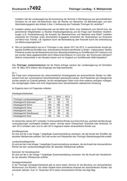 Thüringer Landtag 5. Wahlperiode Drucksache 5/ 7492 18.03.2014 Kleine Anfrage der Abgeordneten Berninger (DIE LINKE) und Antwort des Thüringer Justizministeriums Situation der Schöffinnen und Schöffen sowie ehrenamtlichen Richterinnen und Richter in Thüringen - Teil 1 Die Kleine Anfrage 3635 vom 8. Januar 2014 hat folgenden Wortlaut: Artikel 86 Abs. 3 der Verfassung des Freistaats Thüringen bestimmt: "An der Rechtsprechung wirken Frau- en und Männer aus dem Volk mit." Schöffinnen/Schöffen und ehrenamtliche Richterinnen/Richter sollen ih- ren Sach- und Fachverstand in die Rechtsfindung mit einbringen. Ihre Tätigkeit dient aber ebenso der de- mokratischen Kontrolle der Justiz durch die Öffentlichkeit. In den §§ 32 bis 34 des Gerichtsverfassungsgesetzes (GVG) ist genannt, wann eine Person als "unfähig" für das Schöffenamt gilt (§ 32) bzw. wann sie nicht ins Schöffenamt berufen werden soll (§§ 33 und 34). Nach § 51 GVG sind Schöffinnen/Schöffen ihres Amts zu entheben, wenn sie ihre Amtspflichten gröblich ver- letzt haben. § 52 GVG nennt Fälle, in denen Schöffinnen/Schöffen von der Schöffenliste zu streichen sind. Diese Vorschriften sollen gewährleisten, dass wirklich geeignete Personen zu dieser verantwortungsvollen Tätigkeit bei Gerichten berufen werden. Im Gegenzug haben aber diese in der Thüringer Justiz ehrenamt- lich engagierten Menschen auch Anspruch auf angemessene Rahmenbedingungen für ihre Tätigkeit, so z.B. auch hinsichtlich der Vereinbarkeit des Ehrenamts mit ihrer Berufstätigkeit bzw. mit familiären Verpflichtungen. Ich frage die Landesregierung: 1. Wie viele Schöffinnen/Schöffen sowie ehrenamtliche Richterinnen/Richter gab bzw. gibt es an Thüringer Gerichten im Zeitraum von 2011 bis 2013 (bitte nach Gerichtsbarkeit, jeweiligem Gericht und - soweit die Zahlen divergieren - nach Anzahl der Haupt- bzw. Hilfsschöffen aufschlüsseln - auch Veränderungen in diesem Zeitraum bezogen auf die einzelnen Gerichte und den Zeitpunkt der Veränderung ausweisen)? 2. Nach welchen Eignungskriterien werden Schöffinnen und Schöffen sowie ehrenamtliche Richterinnen und Richter ausgewählt? Welche Kriterien werden - neben den im Gerichtsverfassungsgesetz genannten - auf welcher rechtlichen Grundlage und gegebenenfalls vergleichbar mit den zur Berufsrichterauswahl geltenden Kriterien - herangezogen? 3. Inwiefern gab es an Thüringer Gerichten in den Jahren 2011 bis 2013 Fälle, in denen Schöffinnen/ Schöffen bzw. ehrenamtliche Richterinnen/Richter wegen "Unfähigkeit", des Vorliegens eines der in den §§ 33 oder 34 GVG genannten Gründe nicht berufen oder nach § 51 GVG ihres Amts enthoben bzw. nach § 52 GVG von der Schöffenliste gestrichen werden sollten bzw. wurden (bitte nach Gericht, Jah- resscheiben, Gründen und "Verfahrensausgang" - eingeschlossen rechtlicher Schritte der Betroffenen und deren Ergebnis - aufschlüsseln)? 4. Wie bewertet die Landesregierung die Liste der "Nichtberufungsgründe" (Wortlaut: "... sollen nicht be- rufen werden") in § 33 GVG, insbesondere die in Nummer 2 dieser Vorschrift festgelegte Altersgrenze und die in Nummer 6 festgelegte "Zwangspause" für Personen, "die in Vermögensverfall geraten sind"? Druck: Thüringer Landtag, 31. März 2014