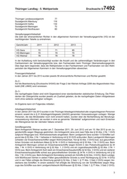 Drucksache 5/ 7492 Thüringer Landtag - 5. Wahlperiode Inwiefern hält die Landesregierung die Anwendung der Nummer 4 (Nichteignung aus gesundheitlichen Gründen) für mit dem UN-Abkommen über die Rechte von Menschen mit Behinderungen und dem Gleichstellungsgebot des Artikels 2 Abs. 4 Verfassung des Freistaats Thüringen für vereinbar? 5. Inwiefern spielen auch Gesichtspunkte wie die Nähe des Wohn- bzw. Arbeitsorts zum Gericht bzw. die persönlichen Möglichkeiten zu flexibler Arbeitszeitgestaltung und die Frage nach familiären Verpflich- tungen (z.B. Kinderbetreuung) bei Auswahl der Bewerberinnen und Bewerber eine Rolle? Inwiefern unterstützt die Thüringer Justiz ehrenamtlich Engagierte hinsichtlich der Vereinbarkeit von Ehrenamt und Beruf bzw. Familie, z.B. logistisch durch die Bereitstellung oder finanziell durch die Unterstützung von Betreuungsangeboten? 6. Wie (un-)problematisch war es in Thüringen in den Jahren 2011 bis 2013, in ausreichender Anzahl ge- eignete Schöffinnen/Schöffen bzw. ehrenamtliche Richterinnen/Richter zu finden - insbesondere: Welche Probleme wurden bei der Bewerbersuche bzw. Bewerberaufstellung zur Schöffenwahl 2013 bekannt und wie wurden diese gegebenenfalls durch Akteurinnen/Akteure im Land bzw. den Kommunen behoben? Welche Unterschiede in der Situation lassen sich im Vergleich zur Schöffenwahl 2008 feststellen? Das Thüringer Justizministerium hat die Kleine Anfrage namens der Landesregierung mit Schreiben vom 18. März 2014 (Datum des Eingangs) wie folgt beantwortet: Zu 1.: Die Frage kann entsprechend der unterschiedlichen Einsatzgebiete der ehrenamtlichen Richter nur diffe- renziert nach den verschiedenen Gerichtsbarkeiten beantwortet werden. Die Präsidenten der Obergerichte wurden jeweils um Zuarbeit gebeten, da die nachgefragten Daten nicht ohne weiteres verfügbar vorliegen. Die nachgefragten Daten sind nicht Gegenstand einer standardisierten statistischen Erhebung. Im Ergebnis kann ich Folgendes mitteilen: Arbeitsgerichtsbarkeit 2011 2012 2013 Thüringer Landesarbeitsgericht 106 109 104 Arbeitsgericht Eisenach 81 82 73 Arbeitsgericht Erfurt 155 162 165 Arbeitsgericht Gera 109 112 114 Arbeitsgericht Jena 90 86 90 Arbeitsgericht Nordhausen 77 80 83 Arbeitsgericht Suhl 105 122 124 Im Verlauf des Jahres 2011 schieden 14 ehrenamtliche Richter aus ihrem Amt aus, nachdem die Berufungs- voraussetzungen nachträglich entfallen waren. Gründe waren Ortswechsel, Krankheit oder ähnliches. Im Jahr 2012 schieden zehn und im Jahr 2013 insgesamt sieben ehrenamtliche Richter aus. Schöffengerichte Es wird auf die in der Anlage 1 beigefügte Zusammenstellung verwiesen, die die Anzahl der Schöffen der aktuellen Wahlperiode auflistet. Die Liste wurde vom Präsidenten des Thüringer Oberlandesgerichts erstellt. Landwirtschaftsgerichte Es wird auf die in der Anlage 1 beigefügte Zusammenstellung verwiesen, die die Anzahl der ehrenamtlichen Richter bei den Landwirtschaftsgerichten der aktuellen Wahlperiode auflistet. Kammern für Handelssachen Es wird auf die in der Anlage 1 beigefügte Zusammenstellung verwiesen, die die Anzahl der Handelsrich- ter der aktuellen Wahlperiode auflistet. Sozialgerichtsbarkeit In der Thüringer Sozialgerichtsbarkeit gibt es keine festen Termine für die Berufung von ehrenamtlichen Richterinnen und Richtern. Von daher besteht keine einheitliche Amtszeit der ehrenamtlichen Richter. Sie schwankt vielmehr. Zum 31. Dezember 2013 waren ehrenamtliche Richter wie folgt tätig: 2