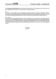 Drucksache 4/ 2348 Thüringer Landtag - 4. Wahlperiode Das Thüringer Innenministerium hat die Kleine Anfrage namens der Landesregierung mit Schreiben vom 26. September 2006 (Eingang: 5. Oktober 2006) wie folgt beantwortet: Zu 1.: Nach dem 1. Januar 2005 wurde kein Widerspruchsbescheid erlassen. Im Übrigen obliegt dem Wasser- und Abwasserverband Bad Salzungen die Abhilfeprüfung im Rahmen des Widerspruchsverfahrens, so dass der unteren Rechtsaufsichtsbehörde keine weitere umfassende und belastbare Aussage möglich ist. Zu 2. und 3.: Die Thüringer Verwaltungsgerichtsbarkeit erhebt eine Statistik auf der Grundlage der bundeseinheitlichen Anordnung über die Zählkartenerhebung in der Verwaltungsgerichtsbarkeit. Die verwaltungsgerichtlichen Verfahren werden nach bundeseinheitlich vorgegebenen Sachgebieten erfasst. Eine Differenzierung nach den Gebieten Wasserversorgung und Abwasserentsorgung erfolgt nicht und kann auch nicht abgeleitet werden. Dr. Gasser Minister 2