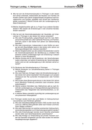 Thüringer Landtag - 4. Wahlperiode Drucksache 4/529 9. Wie hat sich die Einkommenssituation in Thüringen in den letzten fünf Jahren entwickelt, insbesondere die Situation von Familien mit Kindern (Zahlen nach Jahren aufgeschlüsselt und getrennt nach Ein- zelpersonen und Familien, gestaffelt nach Anzahl der Familienmit- glieder ausweisen)? Welche Gründe sieht die Landesregierung für diese Entwicklung? 10.Welche Vergleichszahlen gibt es zu Frage 9 aus anderen Bundes- ländern? Wie werden die Entwicklungen in den einzelnen Bundes- ländern bewertet? 11.Wie hat sich die Verschuldungssituation der Haushalte und Unter- nehmen in Thüringen in den letzten fünf Jahren entwickelt? a) Wie viele Privathaushalte, aufgeschlüsselt nach Ein- bzw. Mehr- personenhaushalte bzw. allein stehende Personen und Familien, sind bzw. waren in den letzten fünf Jahren von Überschuldung betroffen? b) Wie viele Unternehmen, insbesondere in einer Größe von weni- ger als zehn Beschäftigten waren in den letzten zehn Jahren von Zahlungsunfähigkeit bzw. Insolvenz betroffen? c) Welche Vergleichzahlen aus den anderen Bundesländern sind für die Verschuldungssituation der Bevölkerung zu erhalten? Wie bewerten andere Landesregierungen die Entwicklung in diesem Bereich in ihrem Bundesland? d) Welche Gründe sind für (die Entwicklung ) der Verschuldungssi- tuation erkennbar und welche Entwicklung der Verschuldungssi- tuation wird von der Landesregierung in den nächsten Jahren er- wartet? 12. Zu Strukturen der Schuldnerberatung in Thüringen: a) Welche Strukturen zur Schuldnerberatung stehen in Thüringen zur Verfügung? b) Wie viele Fälle bzw. Anfragen haben die Schuldnerberatungen in den letzten fünf Jahren bearbeitet? Sind Aussagen zum sozialen Hintergrund der Rat suchenden Einzelpersonen oder Familien möglich? c) Wie wurden diese Beratungsstrukturen in den letzten fünf Jahren durch öffentliche Förderung unterstützt (nach einzelnen Jahren aufschlüsseln)? d) Welche anderen Aktivitäten bzw. Maßnahmen gibt es nach An- sicht der Landesregierung, um Zwangsvollstreckungsmaßnahmen, insbesondere das Tätigwerden des Gerichtsvollziehers, zu ver- hindern? e) In welcher Weise unterstützt (zukünftig) die Landesregierung sol- che präventiven Hilfsangebote? 13.In Thüringen werden durch das Land Stellen im Verbraucherinsol- venzverfahren nach Richtlinien gefördert. a) Wie viele Vollzeitbeschäftigteneinheiten (VbE) wurden durch das Land von 1999 bis 2004 gefördert (bitte nach Kreisen und Kreis- freien Städten auflisten)? b) Wie viele Fälle konnten von welchen anerkannten Verbraucherin- solvenzberatungsstellen zum Entschuldungsziel geführt werden? c) Wie viele Entschuldungen konnten durch Gerichte entschieden werden (bitte nach Gerichtsstandorten aufschlüsseln)? d) Wie viele Anträge zur Entschuldung bei privater Insolvenz wur- den bei Gerichten eingereicht und wie viele wurden mit welchen Hauptbegründungen abgelehnt? 3