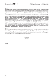 THÜRINGERLandtag Thüringer LANDTAG - 4. Wahlperiode Drucksache 4/ 1511 4. Wahlperiode 20.12.2005 Kleine Anfrage des Abgeordneten Kuschel (Die Linkspartei.PDS) und Antwort des Thüringer Innenministeriums Erhebung von Abwasserbeitragsbescheiden vor Satzungsanpassung an das neue Thüringer Kommunalabgabengesetz (ThürKAG) Die Kleine Anfrage 564 vom 4. November 2005 hat folgenden Wortlaut: Nach vorliegenden Informationen haben Aufgabenträger der Abwasserentsorgung neue Beitragsbescheide erlassen. Obwohl in § 21 a Abs. 2 des ThürKAG ein Vollzugs- und Vollstreckungshindernis bis zur Überar- beitung der entsprechenden Satzungen besteht, haben der Abwasserzweckverband "Notter" und der Ab- wasserzweckverband Unstruttal Herbsleben Beitragsbescheide erlassen, obwohl zum Zeitpunkt der Be- scheidung keine an die Neuregelungen angepassten rechtmäßigen Satzungen in den Zweckverbänden vorlagen. Rechtsgrundlage für die Erhebung von Kommunalabgaben nach dem Thüringer Kommunalabga- bengesetz ist eine gültige und dem geltenden Recht angepasste Satzung. Ich frage die Landesregierung: 1. Welche Aufgabenträger der Abwasserentsorgung sind der Landesregierung bekannt, die Beitragsbe- scheide erlassen haben, ohne dass die entsprechenden Satzungen dieser Rechtslage angepasst wor- den sind? 2. Haben die entsprechenden Aufgabenträger der Abwasserentsorgung vorab Rücksprache mit der jewei- ligen Rechtsaufsichtsbehörde gehalten und wenn ja, wie haben die jeweiligen Rechtsaufsichtsbehörden ihre Auffassungen zur Beitragserhebung begründet? 3. Inwiefern sind Bescheide, welche unter den oben dargestellten Voraussetzungen erlassen wurden, nach Ansicht der Landesregierung rechtmäßig erhoben worden und wie wird diese Auffassung begründet? Welche Auswirkungen hat das in § 21 a Abs. 2 ThürKAG enthaltene Vollzugs- und Vollstreckungshinder- nis auf den Erlass von Beitragsbescheiden bis zur Neufassung der Beitragssatzungen? 4. Welche Maßnahmen sind aus Sicht der Landesregierung gegebenenfalls erforderlich, um die Beitragser- hebung in den dargestellten Fällen rechtskonform zu gestalten und wie wird diese Auffassung begründet? Das Thüringer Innenministerium hat die Kleine Anfrage namens der Landesregierung mit Schreiben vom 13. Dezember 2005 (Eingang: 20. Dezember 2005) wie folgt beantwortet: Zu 1. und 2.: Zur Beantwortung der Fragen 1 und 2 wird auf die als Anlage 1 beigefügte Tabelle verwiesen. Druck: Thüringer Landtag, 4. Januar 2006 1