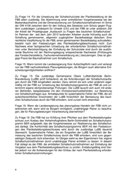Zu Frage 14: Für die Umsetzung der Schallschutzziele der Planfeststellung ist die FBB allein zuständig. Die Abstimmung einer einheitlichen Vorgehensweise bei der Bestandsaufnahme und der Dimensionierung von Schallschutzmaßnahmen im Sinne der DIN 4109 zwischen dem für den Vollzug des Gesetzes zum Schutz gegen Flug- lärm zuständigen Landesamt für Umwelt (LfU) und der FBB ist unter anderem Ziel der Arbeit der Projektgruppe „Austausch zu Fragen des baulichen Schallschutzes“. Im Rahmen der seit dem Jahr 2013 laufenden Arbeiten wurde frühzeitig auch die Schaffung gemeinsamer, allgemein zugänglicher Bauteilkataloge diskutiert. Eine rechtliche Verpflichtung für die FBB, einen gemeinsamen Bauteilkatalog aufzustellen, besteht nach den Festsetzungen des Planfeststellungsbeschlusses nicht. Zum Nachweis einer fachgerechten Umsetzung der erforderlichen Schallschutzmaßnah- men unter Berücksichtigung der Einhaltung der Schutzziele sind durch die ausfüh- rende Baufirma mit der Rechnungslegung entsprechende Nachweise (Prüfzeugnis des Fenster(hersteller)s, Fachunternehmererklärung etc.) beizubringen. Dies ist gän- gige Praxis bei Baumaßnahmen zum Schallschutz. Frage 15: Wann kommt die Landesregierung Ihrer Aufsichtspflicht nach und verlangt von der FBB nachvollziehbare Planungsleistungen, die Bürgern auch alternative Ent- scheidungsmöglichkeiten eröffnen? Zu Frage 15: Die zuständige Gemeinsame Obere Luftfahrtbehörde Berlin- Brandenburg (LuBB) prüft fortlaufend, ob die Anforderungen der Schallschutzaufla- gen durch die FBB eingehalten werden. Dazu stimmt sie sich unter anderem regel- mäßig mit der FBB zur Umsetzung des Schallschutzprogramms der FBB ab und un- ternimmt eigene stichprobenartige Prüfungen. Die LuBB tauscht sich auch mit ande- ren Behörden, beispielsweise mit den Immissionsschutzbehörden, zur Bewertung von Schallschutzfragen aus. Anhaltspunkte für systematische Fehler der FBB, die ein aufsichtsrechtliches Einschreiten der LuBB hinsichtlich der Bemessung des bauli- chen Schallschutzes durch die FBB erfordern, sind zurzeit nicht erkennbar. Frage 16: Wenn die Landesregierung das planungslose Handeln der FBB nicht un- terbrechen will, wann wird es Bürgern ermöglicht, unabhängige Planer zu beauftra- gen, die für Planungsleistungen Verantwortung übernehmen? Zu Frage 16: Die FBB hat zur Erfüllung ihrer Pflichten aus dem Planfeststellungsbe- schluss zum Ausbau des Verkehrsflughafens Berlin-Schönefeld ein Schallschutzpro- gramm BER aufgestellt, das die Vorgehensweise zur Realisierung des Schallschut- zes darlegt. Die Konformität des Schallschutzprogramms BER mit den Festsetzun- gen des Planfeststellungsbeschlusses wird durch die zuständige LuBB dauernd überwacht. Systematische Fehler, die ein Eingreifen der LuBB hinsichtlich der Be- messung des baulichen Schallschutzes durch die FBB erfordern, sind zum gegen- wärtigen Zeitpunkt nicht erkennbar. Im Übrigen steht es den Eigentümern frei, eigene Schallschutzmaßnahmen durch unabhängige Planer ermitteln zu lassen. In diesem Fall obliegt es der FBB, die ermittelten Schallschutzmaßnahmen auf Einhaltung der Vorgaben aus dem Planfeststellungsbeschluss zu prüfen. Erstattungsfähig sind hier- bei jedoch nur die Aufwendungen für den Einbau der nach Planfeststellung erforder- lichen Schallschutzeinrichtungen.