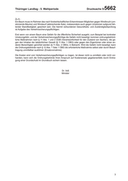 Thüringer Landtag - 5. Wahlperiode Drucksache 5/ 5662 Zu 6.: Ein Baum muss im Rahmen des nach forstwirtschaftlichen Erkenntnissen Möglichen gegen Windbruch (um- stürzende Bäume) und Windwurf (abbrechende Äste), insbesondere auch gegen Umstürzen aufgrund feh- lender Standfestigkeit, gesichert sein. Die hiermit verbundenen Gesundheits- und Zuständigkeitsprüfung ist Aufgabe des Verkehrssicherungspflichtigen. Erst wenn von einem Baum eine Gefahr für die öffentliche Sicherheit ausgeht, zum Beispiel bei konkreter Umsturzgefahr, und der Verkehrssicherungspflichtige die Gefahr nicht beseitigt, kommen ordnungsbehörd- liche Maßnahmen nach § 11 Abs. 1 und 2 OGB (Verantwortlichkeit für den Zustand von Sachen), die ge- gen den Inhaber der tatsächlichen Gewalt (§ 11 Abs. 1 OBG) oder gegen den Eigentümer oder einen an- deren Berechtigten gerichtet werden (§ 11 Abs. 2 OBG), in Betracht. Wird die Gefahr nicht beseitigt, kann die Ordnungsbehörde nach § 12 Abs. 1 Satz 1 OBG die erforderliche Maßnahme selbst oder durch Beauf- tragung unmittelbar ausführen (Ersatzvornahme). Die Kosten sind vom Verkehrssicherungspflichtigen zu tragen. Ist dieser nicht zu ermitteln oder nicht vor- handen, kann sich die Ordnungsbehörde ihren Anspruch auf Kostenersatz gegebenenfalls durch Eintra- gung einer Grundschuld im Grundbuch sichern lassen. Dr. Voß Minister 3