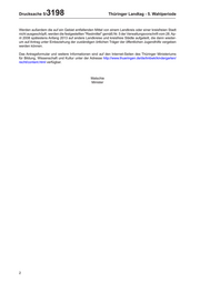 Drucksache 5/ 3198 Thüringer Landtag - 5. Wahlperiode Werden außerdem die auf ein Gebiet entfallenden Mittel von einem Landkreis oder einer kreisfreien Stadt nicht ausgeschöpft, werden die festgestellten "Restmittel" gemäß Nr. 5 der Verwaltungsvorschrift vom 28. Ap- ril 2008 spätestens Anfang 2013 auf andere Landkreise und kreisfreie Städte aufgeteilt, die dann wieder- um auf Antrag unter Einbeziehung der zuständigen örtlichen Träger der öffentlichen Jugendhilfe vergeben werden können. Das Antragsformular und weitere Informationen sind auf den Internet-Seiten des Thüringer Ministeriums für Bildung, Wissenschaft und Kultur unter der Adresse http://www.thueringen.de/de/tmbwk/kindergarten/ recht/content.html verfügbar. Matschie Minister 2