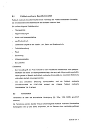 2.2 Politisch motivierte Gewaltkriminalität Politisch motivierte Gewaltkriminalität ist die Teilmenge der Politisch motivierten Kriminalität. die eine besondere Gewaltbereitschaft der Straftäter erkennen lässt. Sie umfasst folgende Deliktsbereiche: - Tötungsdelikte - Körperverletzungen - Brand- und Sprengstoffdelikte - Landfriedensbruch - Gefährliche Eingriffe in den Schiffs-, Luft-, Bahn- und Straßenverkehr - Freiheitsberaubung - Raub Erpressung Widerstandsdelikte - Sexualdelikte Erläuterung: - Der Gewaltbegriff der PKS erscheint für den Polizeilichen Staatsschutz nicht geeignet. Straftaten wie Brand- und Sprengstoffanschläge, aber auch alle Körperverletzungsdelikte haben gerade im Bereich der Politisch motivierten Kriminalität eine besondere Bedeutung und sollten deshalb einbezogen werden. - Um eine einheitliche Erfassung sicherzustellen, wird die Politisch motivierte Gewaltkriminalität im KPMD-PMK anhand des „Katalog Politisch motivierte Gewaltdelikte“ (Nr. 5) erfasst. 2.3 Terrorismus Terrorismus ist über die terroristische Vereinigung (~ 129a, 129b StGB) gesetzlich bestimmt. Als Terrorismus werden darüber hinaus schwerwiegende Politisch motivierte Gewaltdelikte (Katalogtaten des § 129a StGB) angesehen, die im Rahmen eines nachhaltig geführten Seite 6 von 14