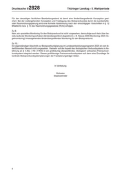 Drucksache 5/ 2828 Thüringer Landtag - 5. Wahlperiode Für den derzeitigen fachlichen Bearbeitungsstand ist damit eine länderübergreifende Konzeption gesi- chert. Bei der weitergehenden Konzeption und Festlegung des Biotopverbundes durch die Landschafts- oder Raumordnungsplanung wird eine formelle Abstimmung nach den einschlägigen Vorschriften in § 12 BNatSchG bzw. § 13 des Raumordnungsgesetzes (ROG) erfolgen. Zu 9.: Nein; ein spezielles Monitoring für den Biotopverbund ist nicht vorgesehen, demzufolge auch kein über be- reits laufende Monitoringvorhaben (länderübergreifend abgestimmt z. B. Natura 2000-Monitoring, DDA-Vo- gelmonitoring) hinausgehendes länderübergreifendes Monitoring für den Biotopverbund. Zu 10.: Ein eigenständiger Abschnitt zur Biotopverbundplanung im Landesentwicklungsprogramm 2025 ist vom fe- derführenden Ressort nicht vorgesehen. Vielmehr soll der Aspekt des ökologischen Verbundsystems in An- lehnung an § 2 Abs. 2 Nr. 2 ROG in ein großräumig übergreifendes, ökologisch wirksames Freiraumver- bundsystem integriert werden. Dieses großräumige Freiraumverbundsystem soll dann eine Grundlage für konkrete Biotopverbundsystemplanungen der Fachplanungsträger bilden. In Vertretung Richwien Staatssekretär 4