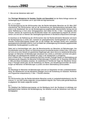 Drucksache 4/ 3992 Thüringer Landtag - 4. Wahlperiode 7. Wie wird der Zeitrahmen dafür sein? Das Thüringer Ministerium für Soziales, Familie und Gesundheit hat die Kleine Anfrage namens der Landesregierung mit Schreiben vom 8. April 2008 wie folgt beantwortet: Zu 1., 2., 4. und 6.: Die Bundesregierung hat die UN-Konvention über die Rechte behinderter Menschen am 30. März 2007 unterzeichnet. Die UN-Konvention zielt auf die Verwirklichung der Gleichbehandlung behinderter Men- schen in der Gesellschaft. Der von der Bundesregierung ausgehandelte völkerrechtliche Vertrag wird mit seiner Ratifizierung in Form eines Vertragsgesetzes nach Artikel 59 Abs. 2 Satz 1 Grundgesetz (GG) wirksam, welches der Zustimmung des Bundesrates bedarf. Die Landesregierung begrüßt die UN-Kon- vention und wird sich im Rahmen des Gesetzgebungsverfahrens im Bundesrat entsprechend einbringen. Im Anschluss an die Ratifizierung der UN-Konvention über die Rechte behinderter Menschen wird durch die Bundesregierung zu prüfen sein, inwieweit ein gesetzgeberischer Handlungsbedarf für ein entspre- chendes Transformationsgesetz besteht oder ob das Anliegen des Vertrages bereits ohne zusätzliche gesetzgeberische Aktivitäten erfüllt ist. Auch auf Seiten der Landesregierung wird daraufhin gegebenenfalls bestehender Handlungsbedarf zu prüfen sein. Dabei wird zu berücksichtigen sein, dass die Menschenrechte von Menschen mit Behinderungen, ihre Grundfreiheiten sowie der Schutz vor Diskriminierung als Grundrechte bereits in Artikel 3 Abs. 3 GG veran- kert sind und es eine Vielzahl von gesetzlichen Regelungen gibt, deren Ziel es ist, bestehende Benachtei- ligungen von Menschen mit Behinderungen abzubauen bzw. solche zu verhindern und ihnen eine gleich- berechtigte und selbstbestimmte Teilhabe am Leben in der Gesellschaft zu ermöglichen. Auch in Artikel 2 Abs. 4 Thüringer Verfassung (VerfThür) und dem Thüringer Gesetz zur Gleichstellung und Verbesserung der Integration von Menschen mit Behinderungen (ThürGIG) vom 16. Dezember 2005 (GVBl. S. 383) sind diese Grundsätze verankert. So verpflichtet § 9 ThürGIG die Träger der öffentlichen Verwal- tung in Thüringen bereits jetzt, bei der Erarbeitung von Rechts- und Verwaltungsvorschriften die Auswir- kungen auf Menschen mit Behinderungen zu prüfen und deren Gleichstellung sicherzustellen. Zu 3.: Der Beauftrage für Menschen mit Behinderungen wird sich an Gesprächen mit dem Landesbehinderten- beirat, der Staatskanzlei und den Ministerien beteiligen und an der Erarbeitung von Gesetzen, Richtlinien und Programmen entsprechend § 17 Abs. 1 ThürGlG mitwirken. Zu 5.: Die UN-Konvention über die Rechte behinderter Menschen wurde im Landesbehindertenbeirat in der Sit- zung am 14. Juni 2007 bereits aufgerufen und grundsätzlich begrüßt. Das Thema sollte gemäß Beschluss zu gegebener Zeit wieder aufgerufen werden. Zu 7.: Der Zeitablauf des Ratifizierungsvorgangs und die Beteiligung durch den Bundesrat ist abhängig vom gesetzgeberischen Verfahren der Bundesregierung. Von letzterem wurde der Zeitrahmen noch nicht be- kanntgegeben. Dr. Zeh Minister 2