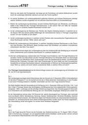 Thüringer Landtag - 5. Wahlperiode Drucksache 5/ 4797 Zu 4.: nein Zu 5.: Die in der Frage benannte Person entzog sich im Jahr 1993 einem Haftbefehl des Kreisgerichts Rudol- stadt. Aufgrund polizeilicher Ermittlungen konnte der Aufenthaltsort im Ausland festgestellt und nach knapp zwölf Monaten mit der Auslieferung in die Bundesrepublik Deutschland der Haftbefehl vollstreckt werden. Zu 6.: Die in der Frage benannte Person ist strafrechtlich in Erscheinung getreten und rechtskräftig verurteilt wor- den. Überdies fielen seit 1992 Erkenntnisse im Zusammenhang mit rechtsextremistischen Aktivitäten, u. a. als Teilnehmer von Demonstrationen sowie vereinzelt bei Konzertveranstaltungen, an. Im Übrigen liegen der Landesregierung Erkenntnisse im Sinne der Fragestellung vor. Von einer weiterge- henden Beantwortung wird gemäß Artikel 67 Abs. 3 Satz 1 Nr. 1 der Verfassung des Freistaats Thüringen abgesehen, da schutzwürdige Persönlichkeitsinteressen der betroffenen Person dem entgegenstehen. Zu 7.: Der Landesregierung liegen Erkenntnisse vor, wonach die in der Frage benannte Person die Gaststätte gemein- sam mit dem Pächter betrieben haben soll und an Veranstaltungen des "Thüringer Heimatschutzes“"teilnahm. Zu 8.: Die betreffende Gaststätte war von April 1997 bis etwa Mitte 1998 an einen Angehörigen der rechtsextre- mistischen Szene aus dem Landkreis Saalfeld-Rudolstadt verpachtet worden. Im Übrigen verweise ich auf Absatz 2 der Antwort zu Frage 6. Zu 9.: Die in der Frage benannte Person gehörte der neonazistischen Organisation "Anti-Antifa-Ostthüringen", die seit 1997 als "Thüringer Heimatschutz" (THS) in Erscheinung trat, an. Über eine Mitgliedschaft in einer rechtsextremistischen Partei liegen keine Erkenntnisse vor. Zu 10.: Es wird auf die Antwort zu Frage 9 verwiesen. Weitergehende Erkenntnisse im Sinne der Fragestellung lie- gen nicht vor. Zu 11.: Die in der Frage benannte Person betreibt seit November 2009 ein Einzelunternehmen für Montageleis- tungen mit Sitz in Unterwellenborn und Saalfeld. Darüber hinaus ist die Beteiligung als Gesellschafter an einer Heizungsbaufirma in Saalfeld seit Ende 2010 bekannt. Im Übrigen liegen der Landesregierung kei- ne weiteren Erkenntnisse über eine strukturelle Verflechtung dieser Unternehmen mit dem rechtsextremis- tischen Spektrum vor. Zu 12.: Der in der Frage benannten Person wurde einmalig eine Zuwendung auf der Grundlage der "Richtlinie über die Gewährung von Existenzgründungsbeihilfen aus Mitteln des Freistaats Thüringen und/oder des Eu- ropäischen Sozialfonds" für den Förderzeitraum vom November 2000 bis Oktober 2001 gewährt. Die Ge- samtbewilligungssumme belief sich auf 18 200 Deutsche Mark, davon Mittel der Bundesanstalt für Arbeit (Überbrückungsgeld) in Höhe von 9 466 Deutsche Mark und ESF-Mittel des Freistaats Thüringen in Höhe von 8 734 Deutsche Mark. Die ESF-Mittel zahlte die Gesellschaft für Arbeits- und Wirtschaftsförderung des Freistaats Thüringen mbH (GFAW) jeweils im Februar 2001 und 2002 aus. Weitere Förderungen sind der Landesregierung nicht bekannt. Geibert Minister 3