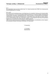 Thüringer Landtag 5. Wahlperiode Drucksache 5/ 7857 04.06.2014 Kleine Anfrage der Abgeordneten Siegesmund (BÜNDNIS 90/DIE GRÜNEN) und Antwort des Thüringer Ministeriums für Soziales, Familie und Gesundheit Antibiotika in der Nutztierhaltung - Umsetzung des Arzneimittelgesetzes Die Kleine Anfrage 3904 vom 9. April 2014 hat folgenden Wortlaut: Kein anderes europäisches Land setzt so große Mengen an Antibiotika in der Nutztierhaltung ein wie Deutschland. In der Tiermast werden allein doppelt so viel Antibiotika eingesetzt wie in der Humanmedizin. Der massive Antibiotikaeinsatz in der Tierhaltung fördert die Herausbildung von resistenten Bakterienstäm- men. Die Zahl der Patientinnen und Patienten, die alljährlich in deutschen Krankenhäusern an Infektionen durch multiresistente Erreger sterben, wird auf bis zu 30.000 geschätzt. Die 16. Novelle des Arzneimittelgesetzes (AMG) soll nun zur Verringerung des Antibiotikaeinsatzes in der Nutztierhaltung beitragen. Das novellierte Arzneimittelgesetz ist am 1. April 2014 in Kraft getreten. Nun ist es Aufgabe der Bundesländer und Landkreise, die neuen Regelungen in den §§ 58 a bis f AMG auch in der Praxis umzusetzen. Ich frage die Landesregierung: 1. Wie und in welchem Umfang hat die Landesregierung alle relevanten Akteure bereits über die neuen Regelungen der §§ 58 a bis f AMG informiert? 2. Welche weiteren Informationen zur Organisation und Umsetzung des novellierten Arzneimittelgesetzes hat sie bereits in welcher Form an wen herausgegeben? 3. In welchem Umfang und mit welchem Ergebnis haben bereits Gespräche mit den Veterinärämtern zur Umsetzung des novellierten Arzneimittelgesetzes stattgefunden? 4. Wird die Landesregierung den Veterinärämtern, Tierhalterinnen und Tierhaltern sowie Tierärztinnen und Tierärzten weitere Umsetzungshinweise/Handlungsleitlinien an die Hand geben, um eine einheitliche Praxis, insbesondere bei der Ausübung des § 58 d AMG (wie z. B. Erstellung von Maßnahmenplänen, Anordnung weiterer Maßnahmen), zu erreichen? Wenn ja, wann und in welcher Form ist hiermit zu rechnen? Wenn nein, warum nicht? 5. Wie viele Personalstellen sind bisher in den Veterinärämtern vorhanden, um die Antibiotikavergabe in der Nutztierhaltung zu kontrollieren (bitte Personalstellen nach Landkreisen für die letzten fünf Jahre angeben)? 6. In welchem Umfang wird ab dem 1. April 2014 zusätzliches Personal in den Veterinärämtern (bitte Auf- schlüsselung nach Landkreisen) eingesetzt, um auch den neuen Aufgaben, die sich aus der Novelle des Arzneimittelgesetzes ergeben, nachkommen zu können? Druck: Thüringer Landtag, 30. Juni 2014