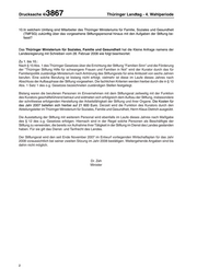 THÜRINGERLandtag Thüringer LANDTAG - 4. Wahlperiode Drucksache 4/ 3867 4. Wahlperiode 28.02.2008 Kleine Anfrage der Abgeordneten Pelke (SPD) und Antwort des Thüringer Ministeriums für Soziales, Familie und Gesundheit Stiftung "FamilienSinn" Die Kleine Anfrage 2242 vom 9. Januar 2008 hat folgenden Wortlaut: Entsprechend dem Protokoll des Landesjugendhilfeausschusses vom 26. Juni 2006 sollte das Personal der Stiftung "FamilienSinn" aus vorhandenen Landesbediensteten bestehen. Im Doppelhaushalt 2008/2009 sind nunmehr jeweils 220 000 Euro für die Verwaltung der Stiftung vorgesehen. Weiterhin war der Presse zu entnehmen, dass der bisherige Stiftungskurator nicht weiter beschäftigt wird. Ich frage die Landesregierung: 1. Welche Kosten sind im vergangenen Jahr im Rahmen des Zeitvertrages mit dem damaligen Stiftungsku- rator entstanden? 2. Wie bewerten die Landesregierung und die Stiftungsgremien die Arbeit des bisherigen Kurators? 3. Welche fachlichen Kriterien gelten für die Personalauswahl des künftigen Kurators und wer hat die Krite- rien erstellt? 4. Zu welchem Zeitpunkt ist die Neubesetzung der Funktion vorgesehen und von wem wird zwischenzeitlich der Aufgabenbereich verantwortet? 5. Gab es zum Zeitpunkt der Haushaltsberatung im Landtag einen Wirtschaftsplan oder eine andere Kalku- lationsgrundlage der Stiftung für die im Haushaltsplan aufgeführten Verwaltungskosten? In welcher Höhe liegen der Berechnung a) Personalkosten und b) Sachkosten zugrunde? 6. Welcher Tarifvertrag kommt innerhalb der Stiftung zur Anwendung? 7. Welche Personalausstattung mit welchen Eingruppierungen ist ab wann für die Stiftung vorgesehen? 8. In welchem Umfang handelt es sich bei der in Frage 7 genannten Personalausstattung um bisherige Landesbedienstete und bleibt deren Arbeitsverhältnis mit dem Land bestehen? 9. Sofern der Einsatz von Personal außerhalb des Landesdienstes vorgesehen ist: in welchem Umfang und aufgrund welcher fachlicher Kriterien? Druck: Thüringer Landtag, 11. März 2008 1