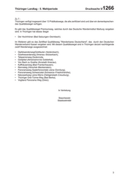 Thüringer Landtag - 5. Wahlperiode Drucksache 5/ 1266 Zu 7.: Thüringen verfügt insgesamt über 13 Prädikatswege, die alle zertifiziert sind und über ein dementsprechen- des Qualitätssiegel verfügen. Es gibt das Qualitätssiegel Premiumweg, welches durch das Deutsche Wanderinstitut Marburg vergeben wird. In Thüringen hat dieses Siegel • Der Hochrhöner (Bad Salzungen–Dermbach). Im Weiteren gibt es das Zertifikat Qualitätsweg "Wanderbares Deutschland", das durch den Deutschen Wanderverband Kassel vergeben wird. Mit diesem Qualitätssiegel sind in Thüringen derzeit nachfolgende zwölf Wanderwege ausgezeichnet: • Gipfelwanderweg(Goldlauter–Heidersbach), • Goethewanderweg (Ilmenau–Stützerbach), • Talsperrenweg Zeulenroda, • Goldpfad (Almerswind bis Goldisthal), • Von Bach zu Goethe (Arnstadt–Ilmenau), • Kyffhäuserweg (Bad Frankenhausen), • Rennsteig (Hörschel–Blankenstein), • Panoramaweg SaaleHorizontale (Jena–Dornburg), • Panoramaweg Schwarzatal (Schwarza–Friedrichshöhe), • Naturparkweg Leine-Werra (Heiligenstadt–Creuzburg), • Thüringer Drei-Türme-Weg (Bad Berka), • Vogtland Panorama Weg (Greiz). In Vertretung Staschewski Staatssekretär 3