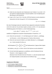 Ministerium für Schule und Bildung NRW M LK HT B1 CAS (GG) Seite 6 von 6 Teilaufgabe c) Anforderungen Lösungsqualität Der Prüfling maximal erreichbare Punktzahl 1 (1) weist nach, dass f ' (15 ) = ka ' (15 ) unabhängig von a ist. 3 2 (2) weist nach, dass die Funktion ka ein lokales Maximum Ha in Abhängigkeit von a besitzt und gibt dieses an. 5 3 (3) bestimmt den gesuchten Wertebereich für den Para- meter a. 4 EK ZK Sachlich richtige Lösungsalternative zur Modelllösung: (12) …………………………………………………………………… …………………………………………………………………… Summe Teilaufgabe c) 12 Summe insgesamt 40 Die Festlegung der Gesamtnote der Prüfungsleistung erfolgt auf dem Bewertungsbogen einer weiteren Aufgabe aus dem Prüfungsteil B. Abiturprüfung 2019 – Nur für den Dienstgebrauch! DK