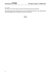 Drucksache 5/ 7133 Thüringer Landtag - 5. Wahlperiode Zu 4. und 5.: Die Fragen 4 und 5 werden wegen ihres Sachzusammenhangs gemeinsam beantwortet. Eine Aussage hierzu kann erst getroffen werden, wenn die Straßenbaumaßnahme in den Straßenbauplan des Bundes eingestellt ist. Auf die Antwort zu Frage 2 wird verwiesen. Carius Minister 2