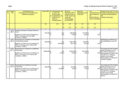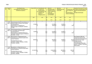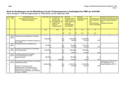 TMBV Anlage zur Beantwortung der Kleinen Anfrage Nr. 1005 Seite 1 Stand der Bewilligungen und des Mittelabflusses bei den Förderprogrammen in Zuständigkeit des TMBV per 30.09.2006 Kleine Anfrage Nr. 1005 des Abgeordneten Dr. Pidde (SPD) vom 28. September 2006 Lfd. Kapitel/ Zweckbestimmung Ansatz 2006 a) Haushaltsreste, die Stand der Stand des vom Ursachen für die unter 70 % der Nr. Titel und Angabe der Förderrichtlinie mit zu Lasten des Bewilligung 2006 Mittelabflusses per Haushaltsansatz mit verfügbaren Bewilligungssumme Veröffentlichungsdatum Ansatzes gehen insgesamt einschl. 30.09.2006 Sperre belegt bzw. liegenden Bewilligungsstände b) Haushaltsreste, die VE der Vorjahre zu der bzw. zusätzlich zum Lasten des Bewirtschaftungs- sonstige Anmerkungen Ansatz zur Haushaltsjahres reserve unterliegend Verfügung stehen per 30.09.2006 in € in € a) in € a) in € a) in € b) in % b) in % b) in % 1 2 3 4 5 6 7 8 9 10 02 / Zuschüsse für den gewerblichen Luftverkehr 683 05 1 2.960.000 a) 0 a) 2.953.500 a) 2.353.500 a) 0 Verordnung (EWG) Nr. 2408/92 des Rates vom b) 0 b) 99,8% b) 79,5% b) 0,0% 23. Juli 1992 10 02 / Verkehrssicherheit und Unfallforschung 2 686 01 274.400 a) 0 a) 241.200 a) 203.110 a) 0 b) 0 b) 87,9% b) 74,0% b) 0,0% 10 02 / Zuschüsse an Ersatzschulen für Schulbauten 3 893 01 und Schulsporthallen 3.400.000 a) 0 a) 3.365.489 a) 1.818.856 a) 0 b) 0 b) 99,0% b) 53,5% b) 0,0% 10 02 / Investitionszuschüsse für integrative 893 02 und sonderpädagogische Kinder- 4 tageseinrichtungen 400.000 a) 0 a) 500.000 a) 0 a) 0 b) 100.000 b) 125,0% b) 0,0% b) 0,0% 10 02 / Zuschüsse für laufende Zwecke an kommunale Bewilligungen im Rahmen der 633 75 Gebietskörperschaften Deckungsfähigkeit in der 5 20.000.000 a) 0 a) 24.728.335 a) 11.070.005 a) 0 Ausgabetitelgruppe (ATG) 75. Richtlinie zur Finanzierung einer b) 0 b) 123,6% b) 55,4% b) 0,0% bedarfsgerechten Verkehrsbedienung im Straßenpersonennahverkehr in Thüringen - StPNV-Finanzierungsrichtlinie vom 05.09.2005 (ThürStAnz. 39/2005)