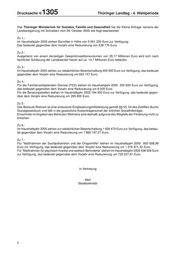 Drucksache 4/ 1305 Thüringer Landtag - 4. Wahlperiode Das Thüringer Ministerium für Soziales, Familie und Gesundheit hat die Kleine Anfrage namens der Landesregierung mit Schreiben vom 26. Oktober 2005 wie folgt beantwortet: Zu 1.: Im Haushaltsjahr 2005 stehen Barmittel in Höhe von 5 061 230 Euro zur Verfügung. Das bedeutet gegenüber dem Vorjahr eine Reduzierung von 538 770 Euro. Zu 2.: Ausgehend von einem derzeitigen Gesamtinvestitionsvolumen von 28,17 Millionen Euro wird sich nach fachlicher Schätzung der Landesanteil hieran auf ca. 14,7 Millionen Euro belaufen. Zu 3.: Im Haushaltsjahr 2005 stehen zur tatsächlichen Bewirtschaftung 450 000 Euro zur Verfügung, das bedeutet gegenüber dem Vorjahr eine Reduzierung um 653 747 Euro. Zu 4.: Für die Familienentlastenden Dienste (FED) stehen im Haushaltsjahr 2005 255 600 Euro zur Verfügung, das bedeutet gegenüber dem Vorjahr eine Reduzierung um 6 000 Euro. Für die Beratungsstellen stehen im Haushaltsjahr 2005 194 400 Euro zur Verfügung, das bedeutet gegen- über dem Vorjahr eine Reduzierung um 265 800 Euro. Zu 5.: Das Betreute Wohnen ist eine ambulante Eingliederungshilfeleistung gemäß §§ 53, 54 des Zwölften Buchs Sozialgesetzbuch und fällt in die gesetzliche Kostenträgerschaft der örtlichen Sozialhilfeträger. Einschnitte im Angebot des Betreuten Wohnens sind deshalb aufgrund des Wegfalls der Förderung nicht zu erwarten. Zu 6.: Im Haushaltsjahr 2005 stehen zur tatsächlichen Bewirtschaftung 1 936 470 Euro zur Verfügung, das bedeu- tet gegenüber dem Vorjahr eine Reduzierung um 1 885 197,27 Euro. Zu 7.: Für "Maßnahmen der Suchtprävention und der Drogenhilfe" stehen im Haushaltsjahr 2005 850 608,99 Euro zur Verfügung, das bedeutet gegenüber dem Vorjahr eine Reduzierung um 1 016 971,32 Euro. Für "Maßnahmen für psychisch Kranke und seelisch Behinderte" stehen im Haushaltsjahr 2005 436 509 Euro zur Verfügung, das bedeutet gegenüber dem Vorjahr eine Reduzierung um 729 227,61 Euro. In Vertretung Illert Staatssekretär 2